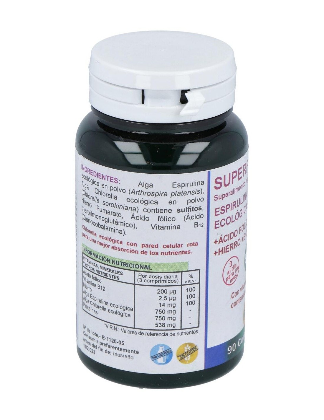 - Contiene espirulina y chlorella certificadas como productos biológicos, aportando nutrientes esenciales derivados de fuentes naturales.