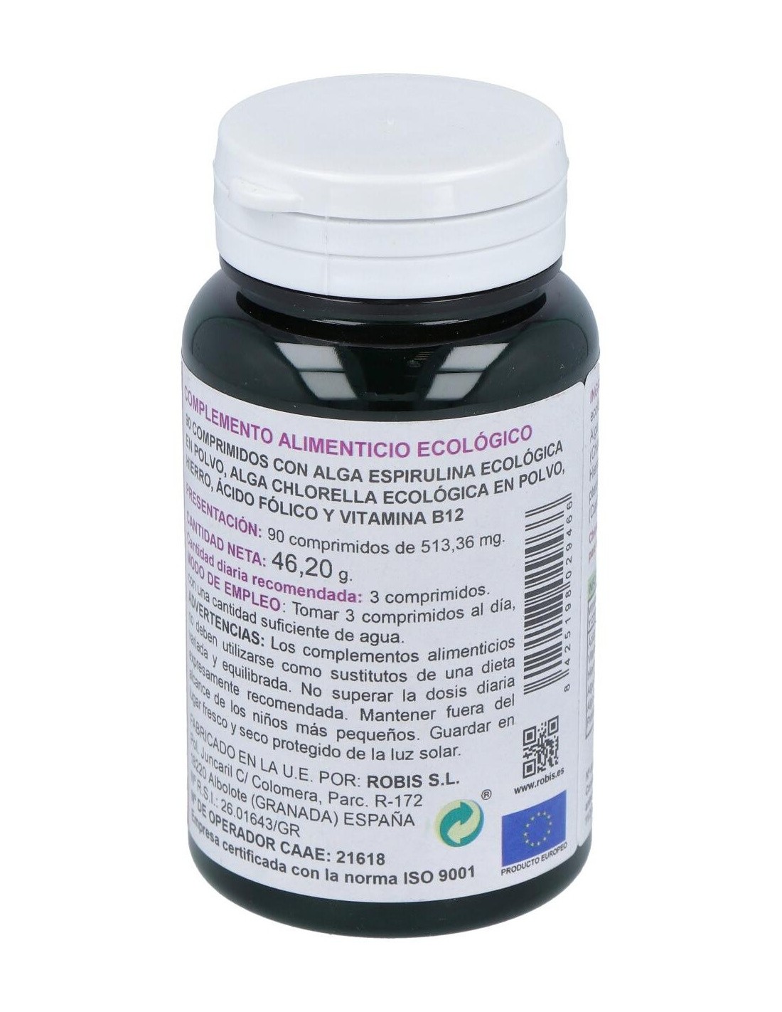 Espirulina + Chlorella Superalimentos Bio 90Comp. de Robis ofrece una alternativa para complementar la dieta con nutrientes de origen vegetal, adaptándose a estilos de vida que valoran la alimentación natural y equilibrada.