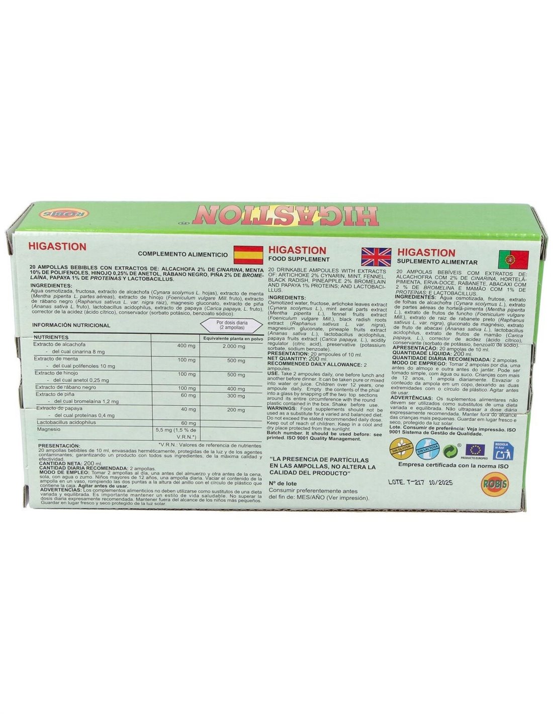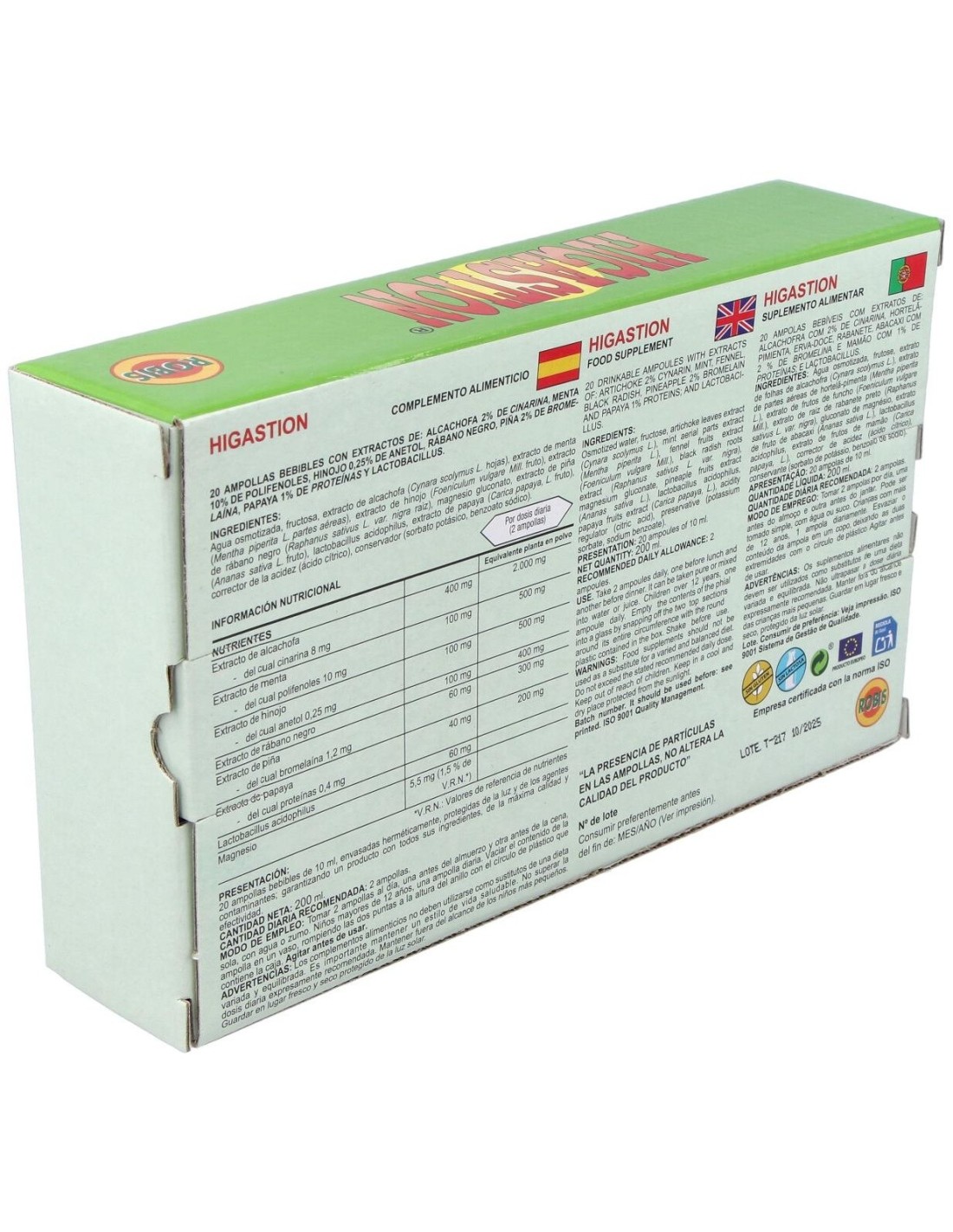 El Higastion 20Amp de Robis es un suplemento diseñado para personas que buscan apoyar su bienestar diario, ofreciendo una fórmula equilibrada que contribuye al mantenimiento de funciones corporales esenciales.