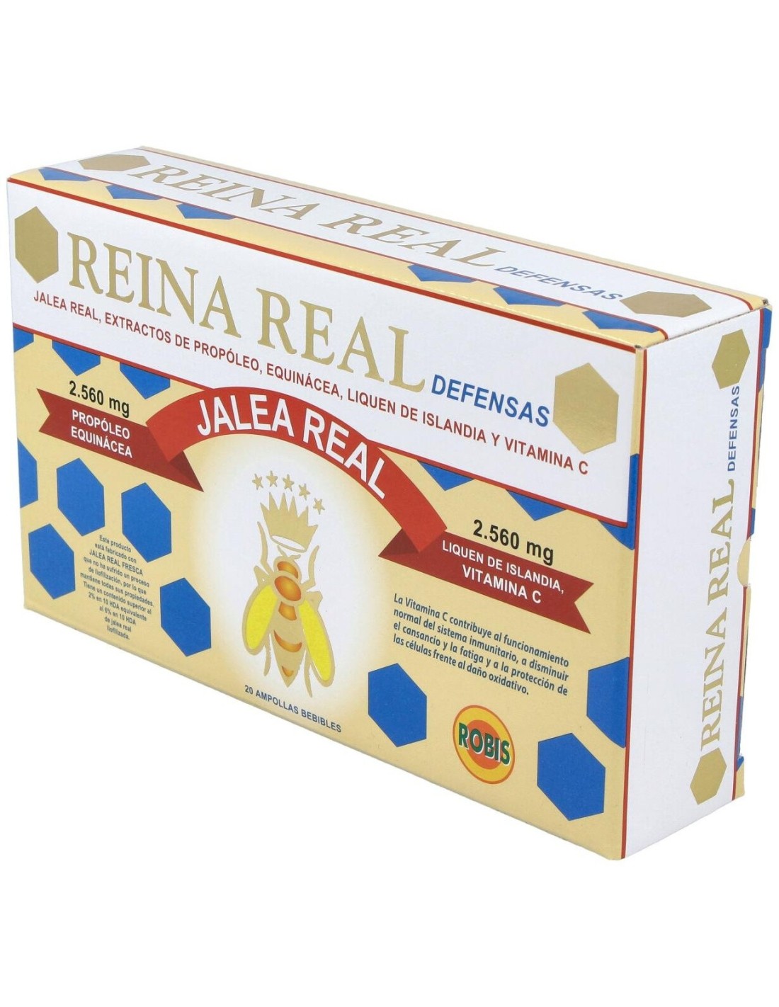 Reina Real Defensas 20Amp. de Robis es un suplemento diseñado para personas que buscan apoyar su sistema inmunológico, ofreciendo un aporte equilibrado de nutrientes esenciales para fortalecer las defensas naturales del cuerpo.