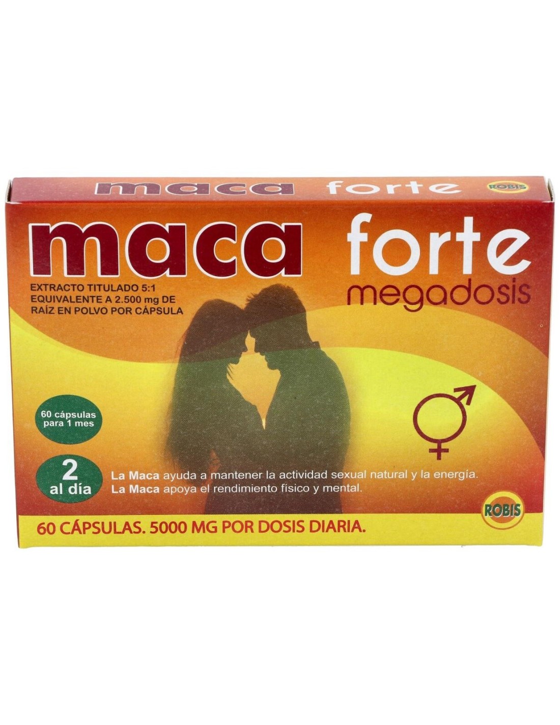 Maca Forte 60Cap. de Robis es un suplemento natural para adultos que busca apoyar el bienestar general y la vitalidad diaria, formulado con extracto concentrado de maca para facilitar su consumo.