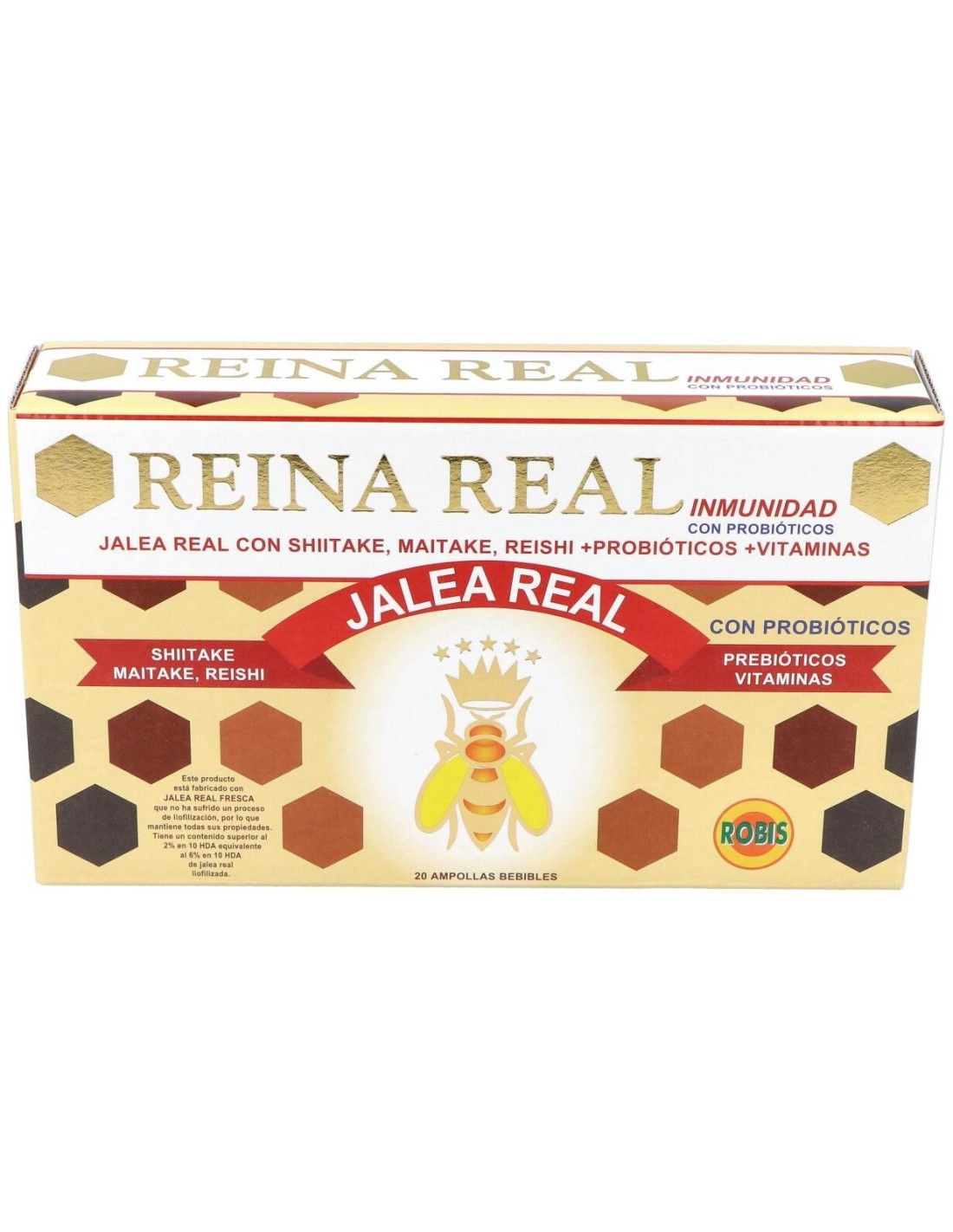 El **Reina Real Inmunidad 20Amp. de Robis** es un suplemento diseñado para personas que buscan apoyar su bienestar diario mediante una fórmula equilibrada. Está pensado para quienes desean complementar su rutina con ingredientes seleccionados que contribuyen al mantenimiento de funciones esenciales del organismo.