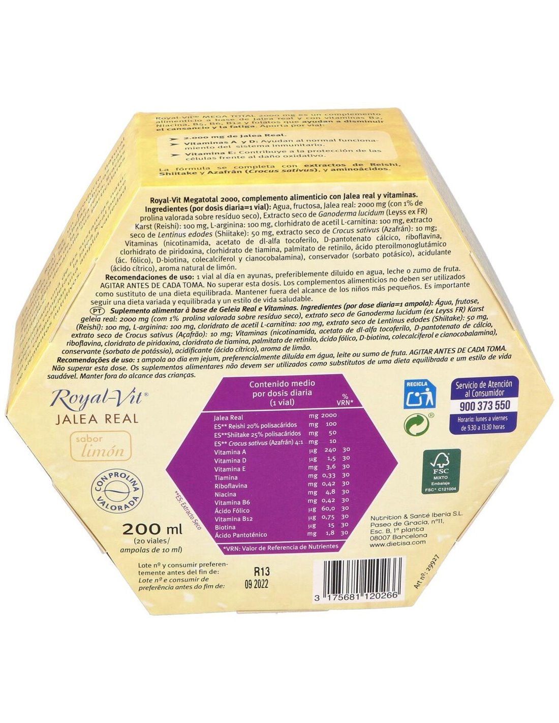 Royal-Vit Mega Total 2000 Mg Envase Que Contiene 20 Viales de Royal-Vit®