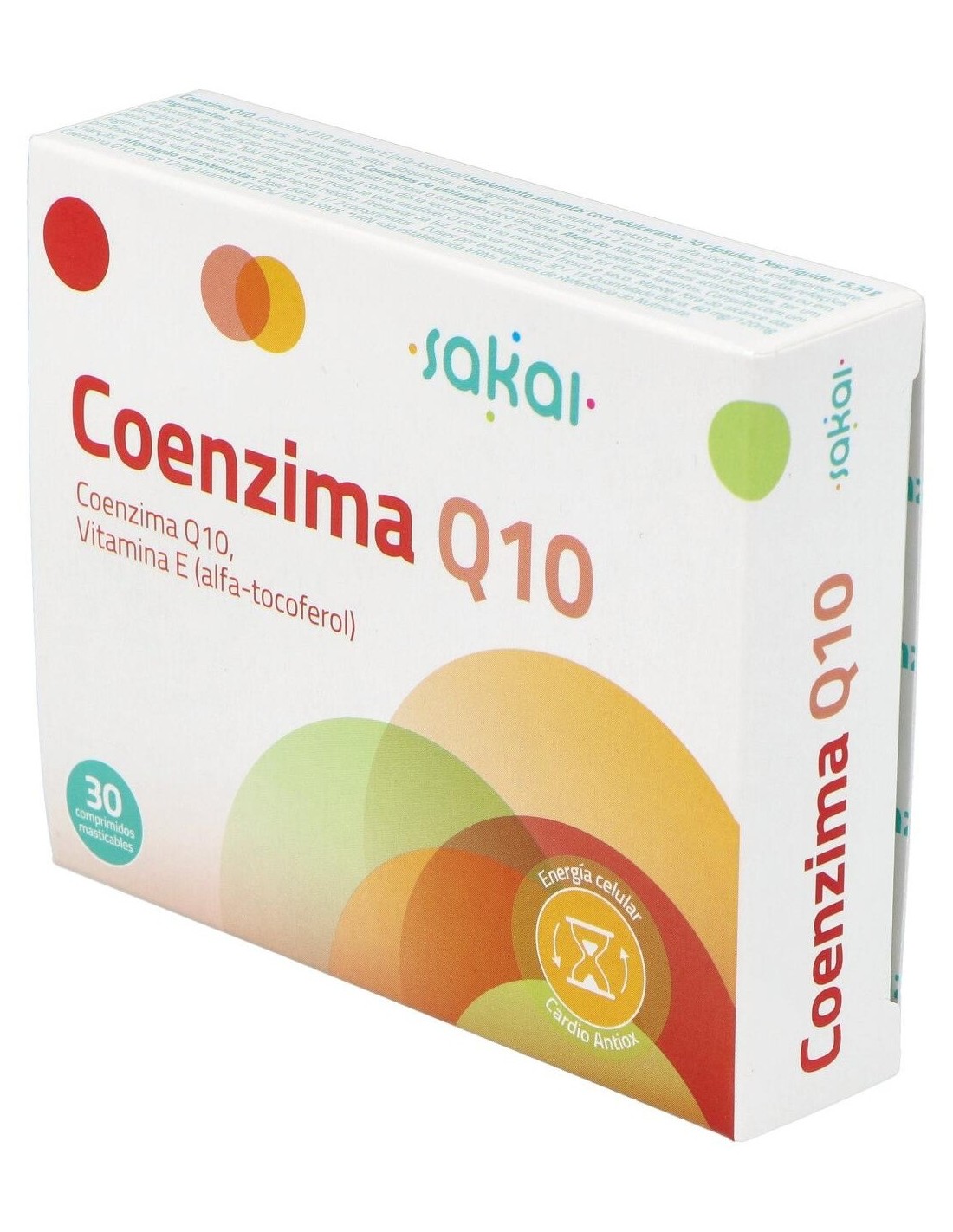 Coenzima Q10 30Comp. Mast. de Sakai es un suplemento para adultos que apoya la producción de energía celular, facilitando el mantenimiento de la vitalidad diaria gracias a su fórmula masticable de fácil absorción.