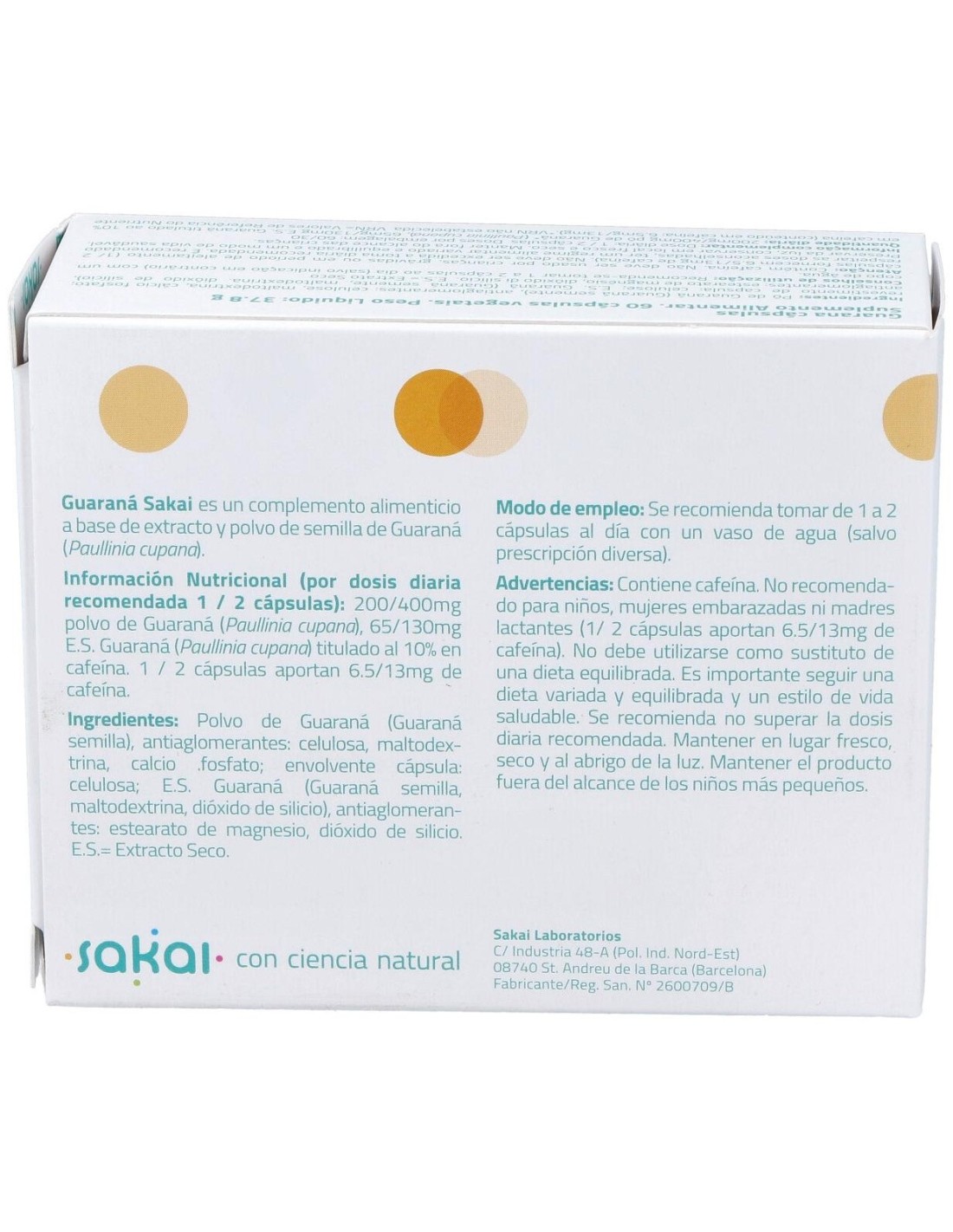 El Guarana 60Cap. de Sakai es un suplemento natural para adultos que busca apoyar la energía y concentración diaria, formulado con extracto de guaraná de alta calidad.