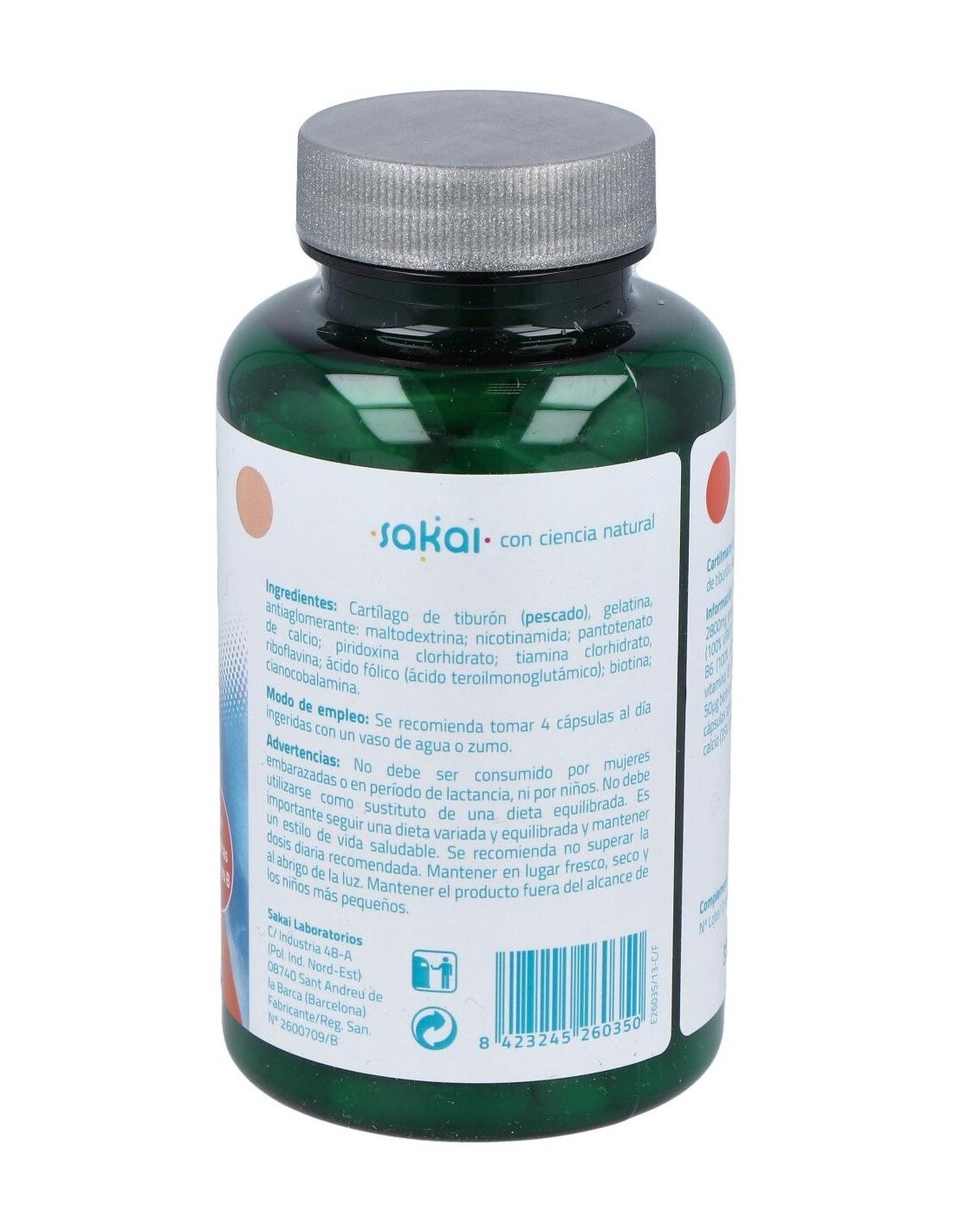 Suplemento con cartílago de tiburón, que contribuye al normal mantenimiento osteo-articular, enriquecido con vitaminas del grupo B. Suplemento con cartílago de tiburón, que contribuye al normal mantenimiento osteo-articular, enriquecido con vitaminas del grupo B.
