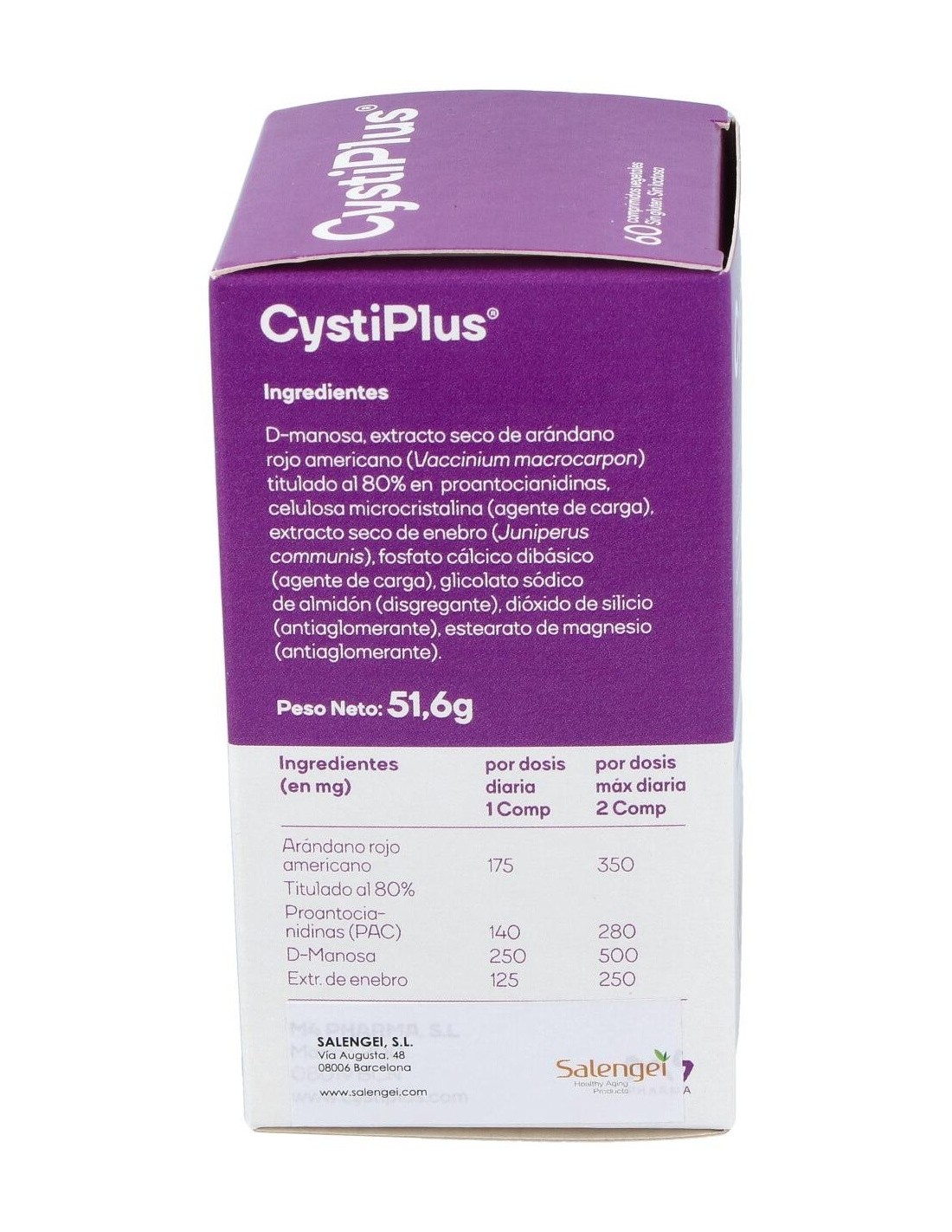 Cystiplus de Salengei es un complemento alimenticio a base de arándano rojo 140 mg PAC (proantocianidinas), D-manosa, y enebro para el bienestar urina