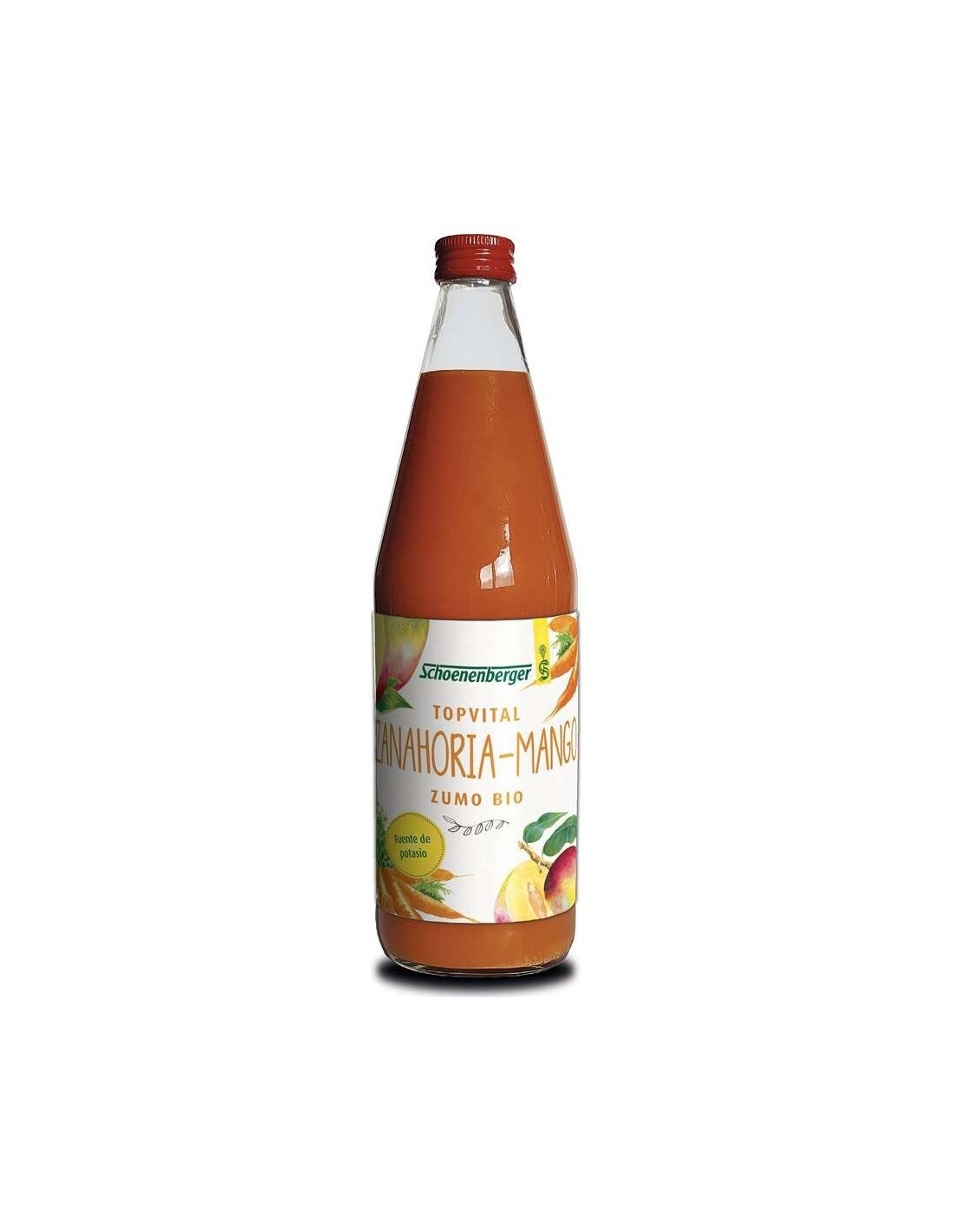 Ingredientes:Zumo de zanahoria de fermentación láctica bio (39 %), zumo de manzana bio, pulpa de mango bio (14 %), pulpa de plátano bio, concentrado d