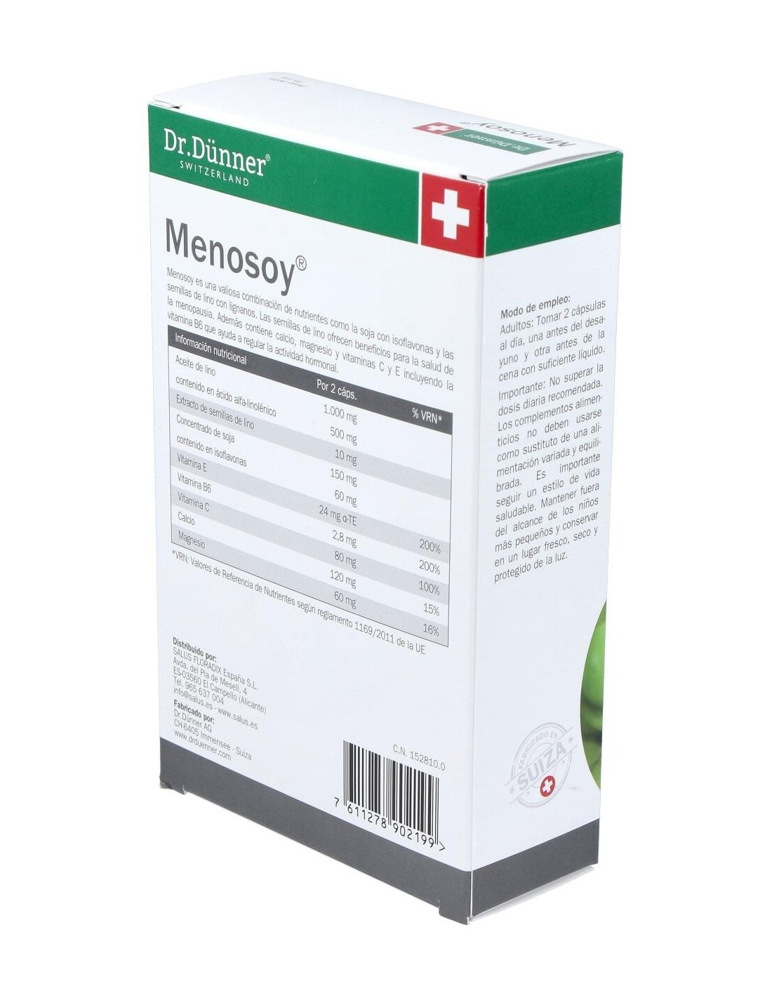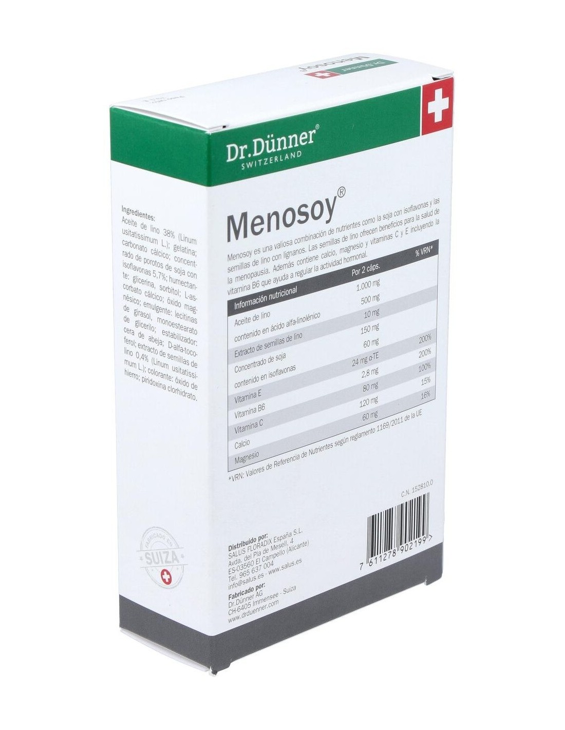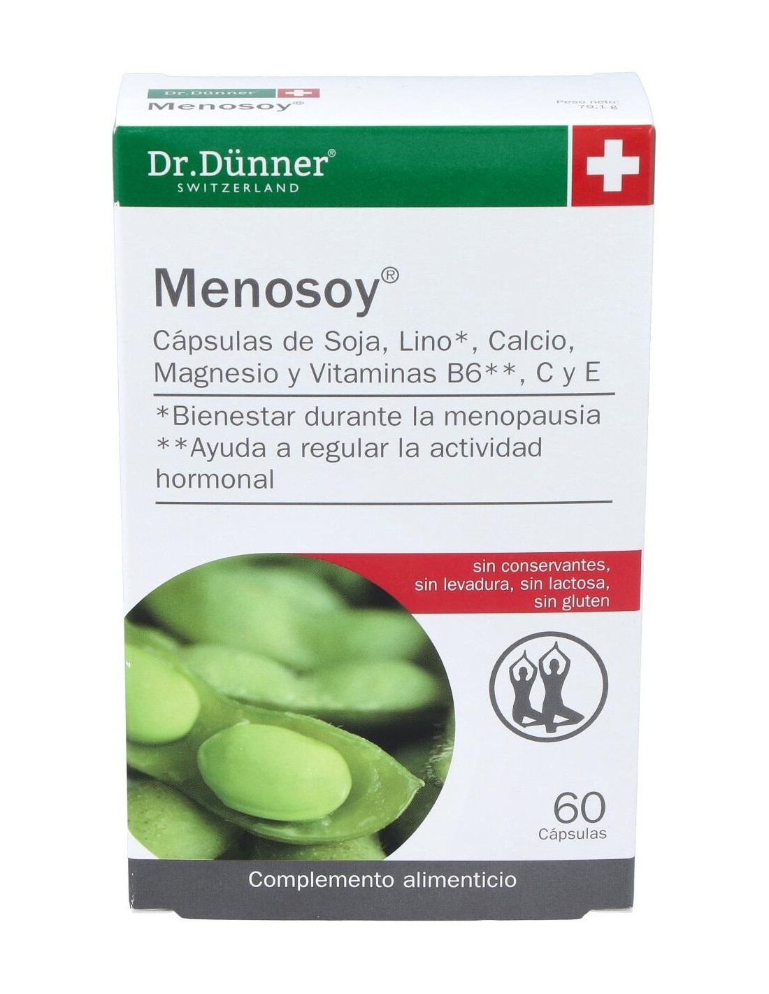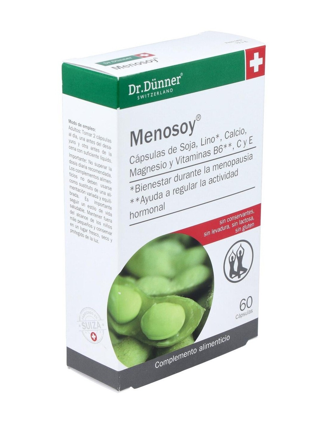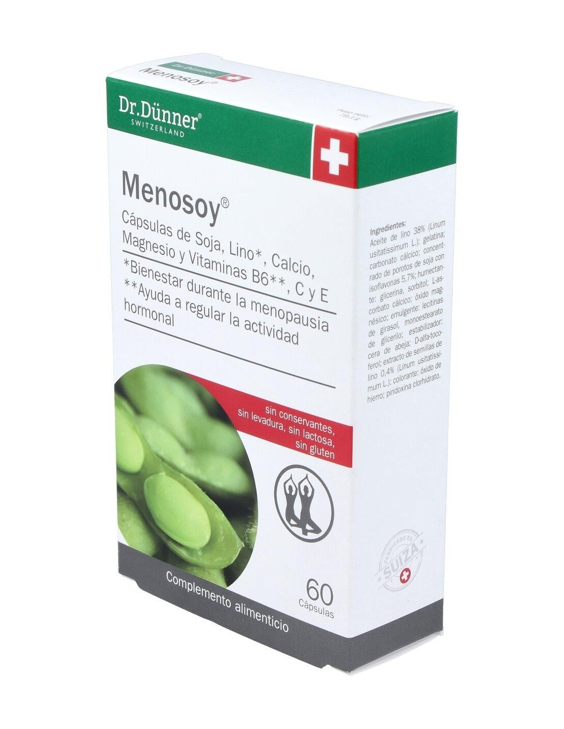 Menosoy es un preparado a base de estrógenos de origen vegetal contenidos en el concentrado de soja (isoflavonas) y en el polvo y aceite de semillas de lino (lignanos) cuya acción estrogénica es mucho más suave que la de los estrógenos humanos. Además contiene calcio, magnesio y vitaminas C y E. Su fórmula ha sido diseñada para compensar la pérdida natural de estrógenos en la mujer, actuando beneficiosamente en el organismo femenino sobre todo durante el climaterio, ya que contribuye al alivio de incómodos síntomas como los sofocos repentinos, los trastornos del sueño y los estados de agotamiento. Indicaciones: