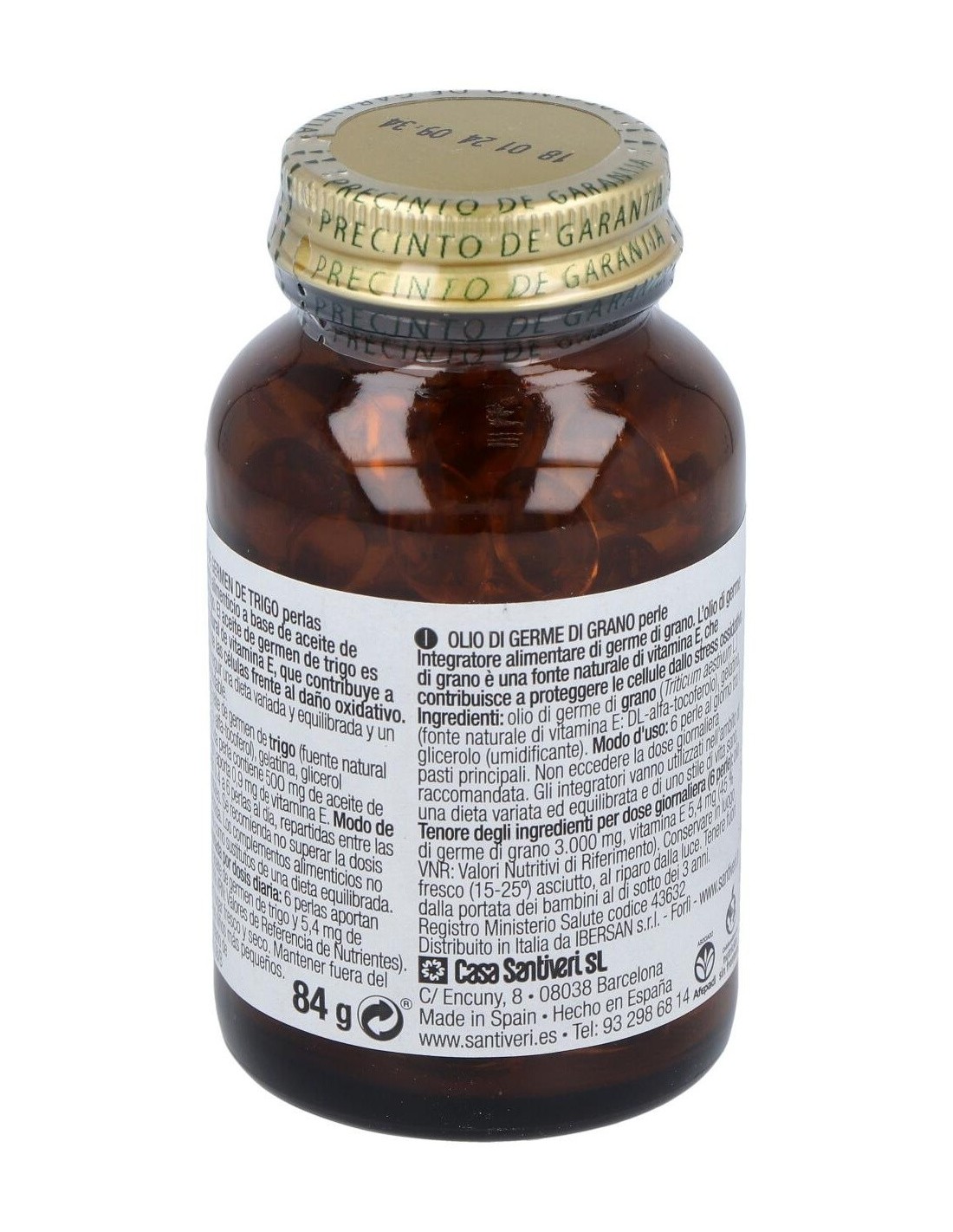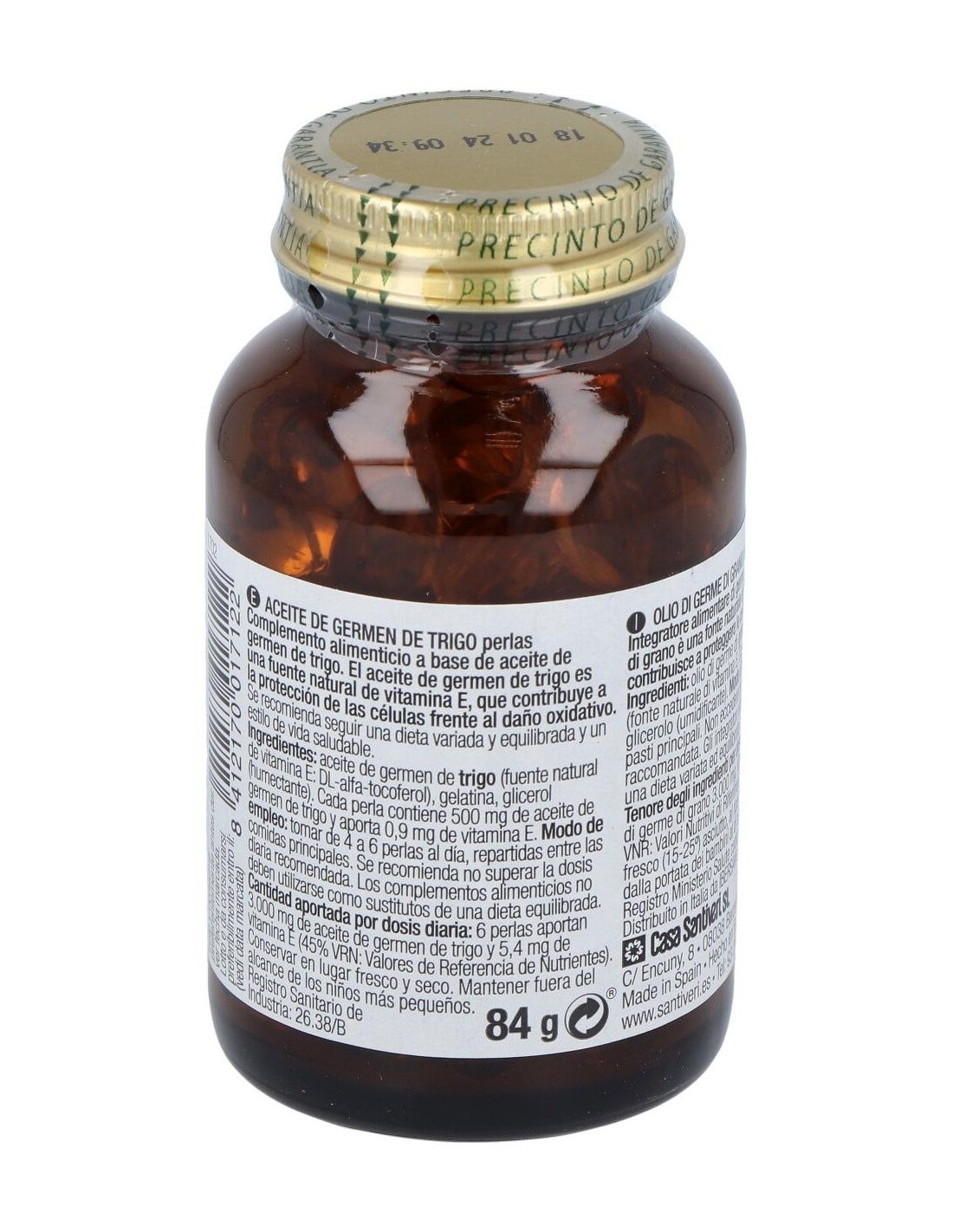 Aceite de germen de trigo (fuente natural de vitamina E: DL-alfatocoferol), gelatina, glicerol (humectante)