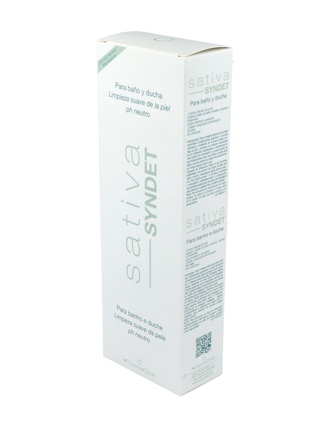 Cosmeclinik Sativa Syndet baño ducha es una suave loción limpiadora, indicada para el cuidado diario de pieles sometidas a tratamientos agresivos. Posee propiedades calmantes y emolientes, gracias a la presencia de avena sativa en su formulación.