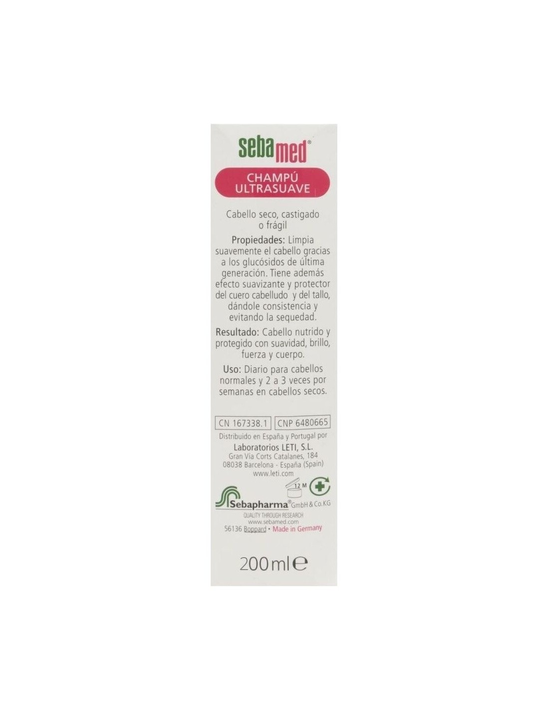 Sebamed champú ultrasuave está especialmente formulado para la protección y limpieza diaria del cabello. Su suave fórmula hidrata, cuida y ayuda a reparar el cabello, desde el cuero cabelludo hasta las puntas. Con un pH 5.5, respeta el equilibrio natural del pelo, sin provocar daños en el mismo.