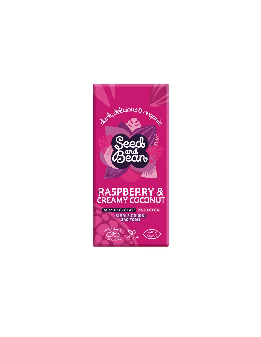 Descubre el increíble sabor del Pack 10 Uds. Chocolate Negro 66% con Coco y Frambuesa de Seed&Bean, una combinación perfecta que deleitará tus sentidos desde el primer bocado. Este chocolate negro, con un 66% de cacao puro, ofrece un equilibrio ideal entre intensidad y suavidad, enriquecido con trozos de coco crujiente y el toque fresco y ácido de la frambuesa natural.