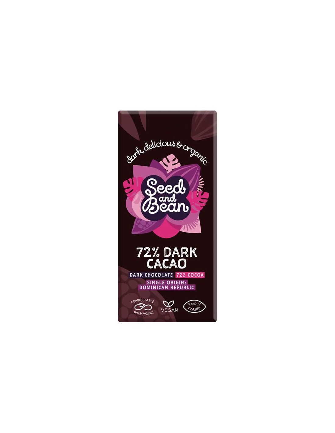 Ingredientes:Pasta de Cacao*, Azúcar de Caña*, Manteca de cacao*, extracto de vainilla*. Mínimo 72% Cacao. (*) De cultivo ecológico.Valor nutricional