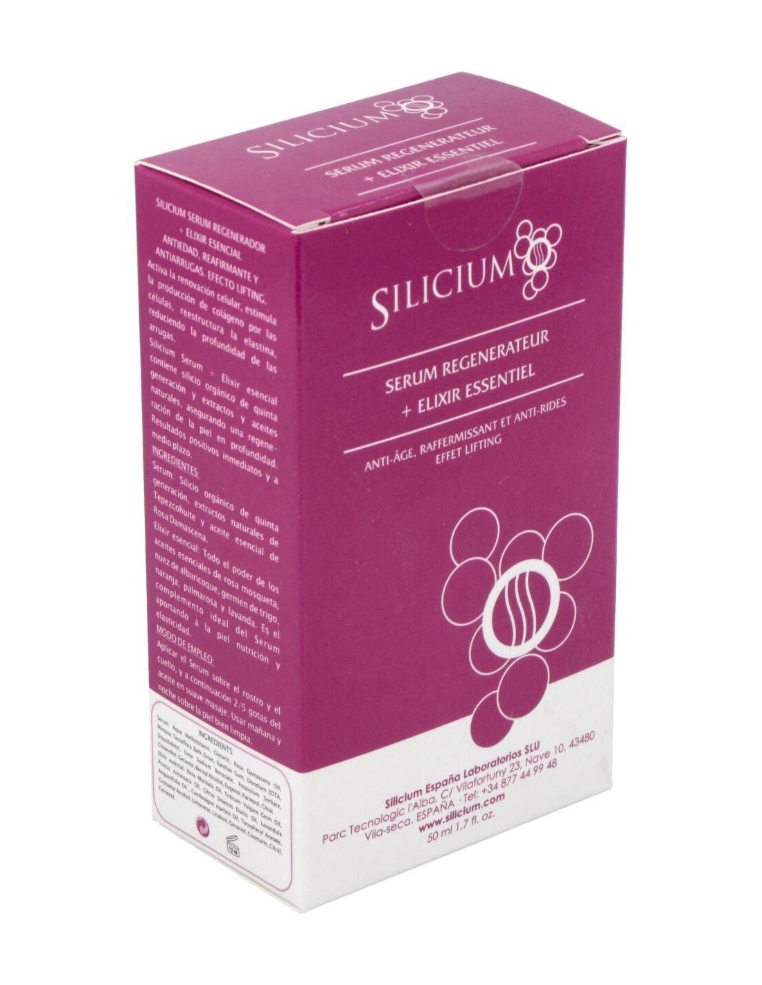 El Silicium Serum y Elixir Esencial 50+15Ml. de Silicium es un tratamiento facial para pieles maduras que ayuda a mejorar la hidratación y firmeza mediante su fórmula enriquecida con silicio orgánico.