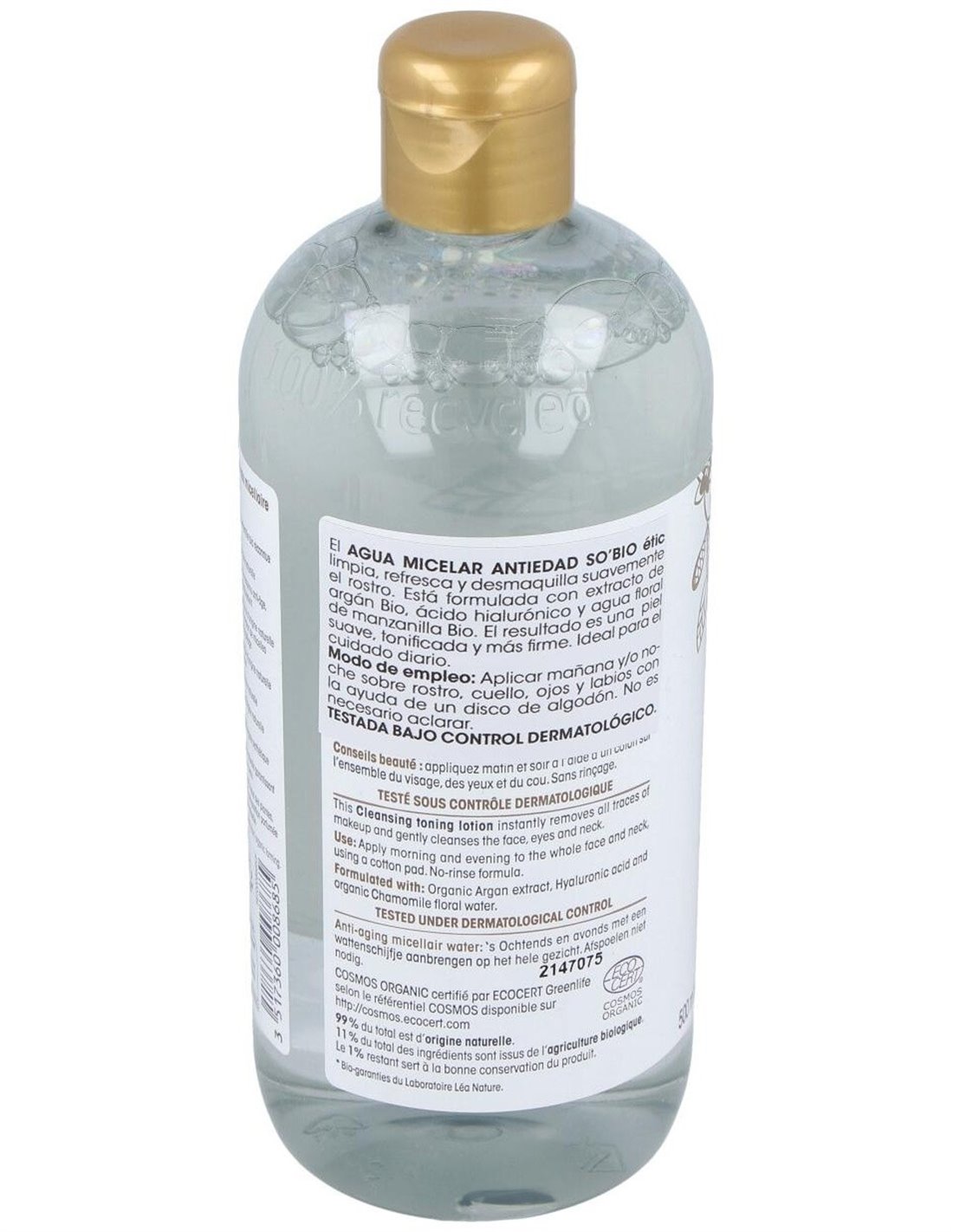 Agua Micelar Antiedad Hialuronico-Argan 500Ml. Bio de So´Bio Etic