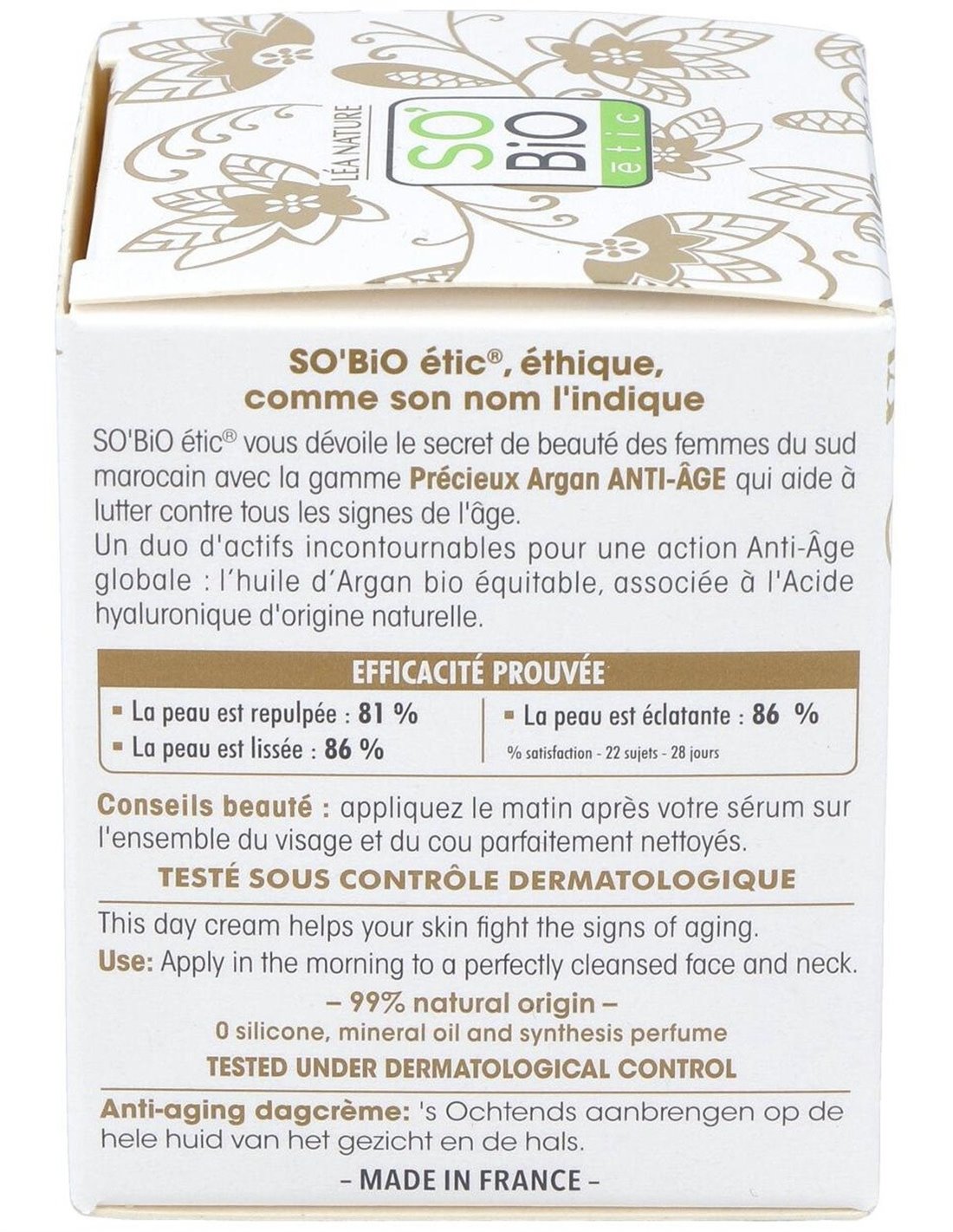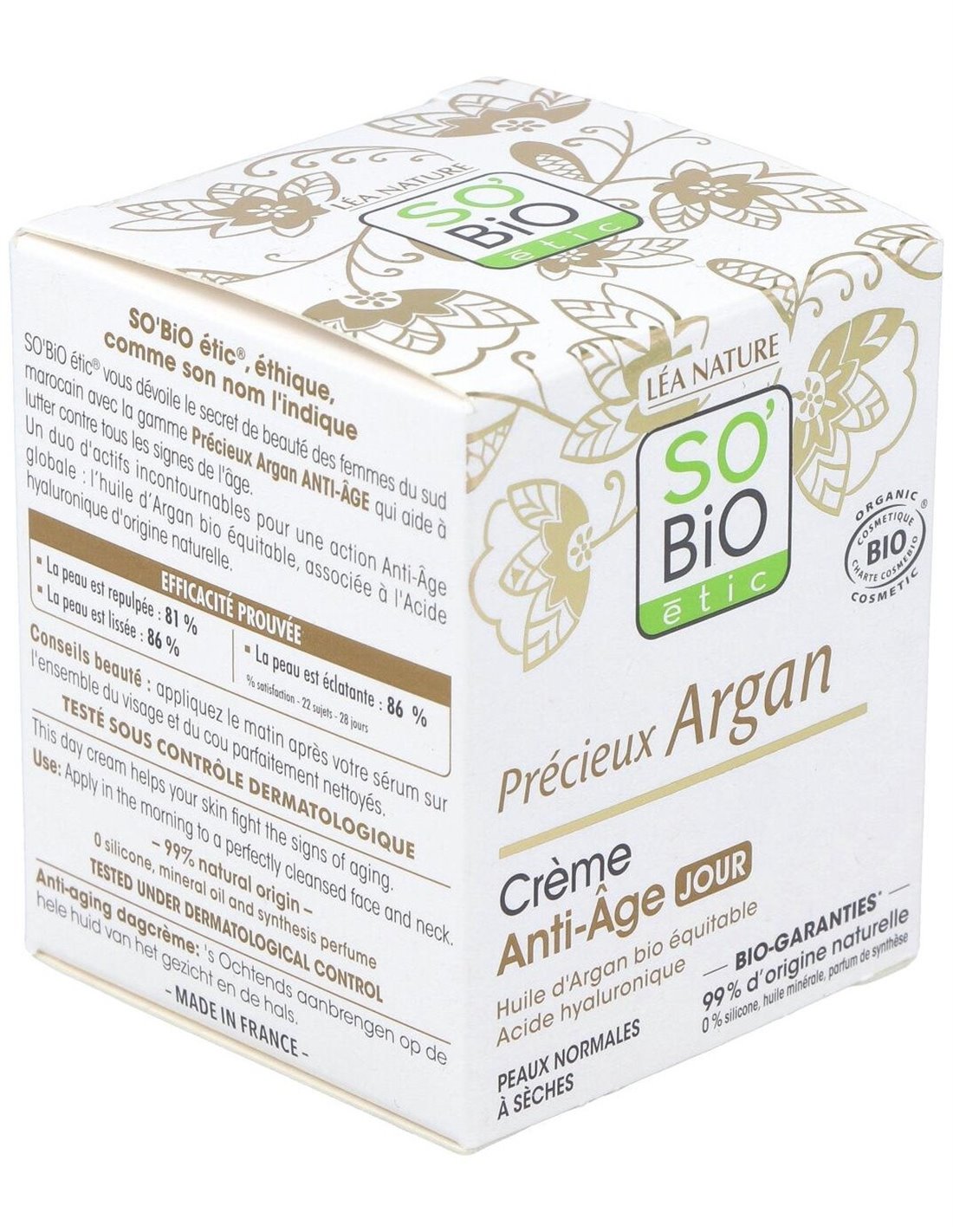 Regenera y protege la piel de los signos del envejecimiento. Nutre la piel durante todo el día y combate la perdida de elasticidad. Deja la piel más suave, firme y radiante. Certificado ECOCERT.