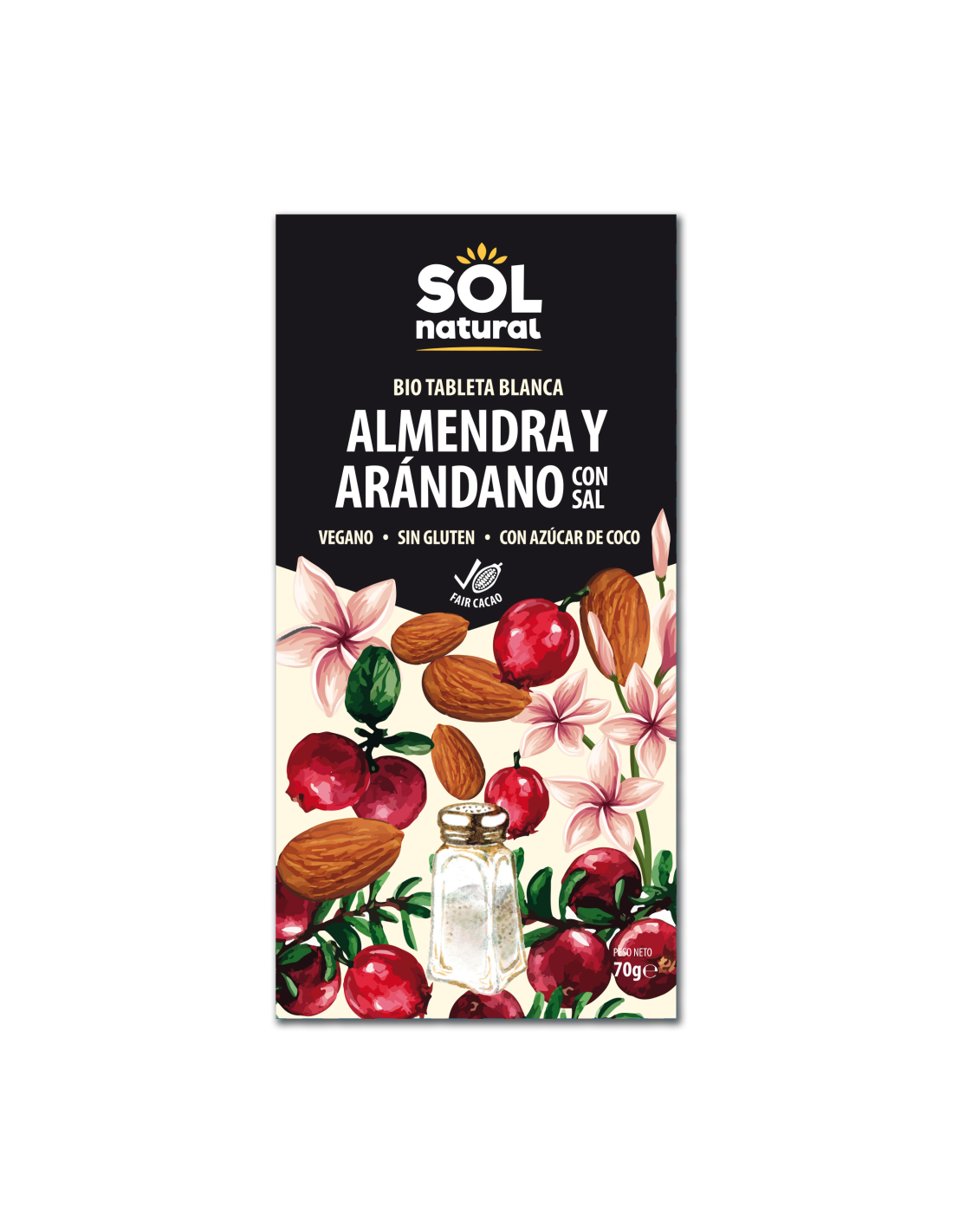 SOLNATURALDescubre el Increíble Pack 10 Uds. Tableta Chocolate Blanco Almendra-Arándano Bio 70 g de Solnatural