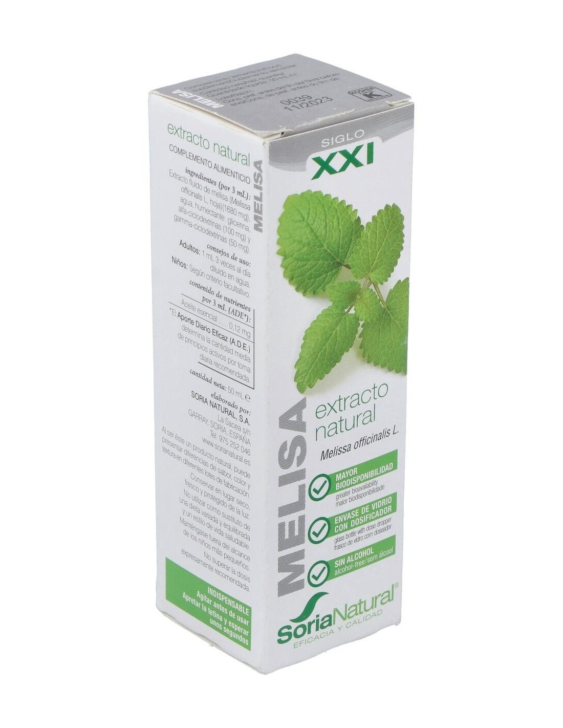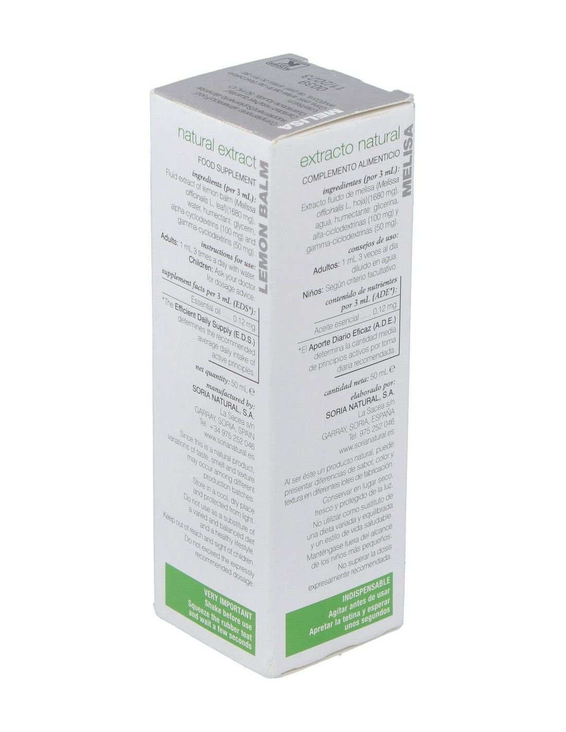- Extracto de melisa en presentación líquida de 50 ml, facilitando su dosificación y uso.