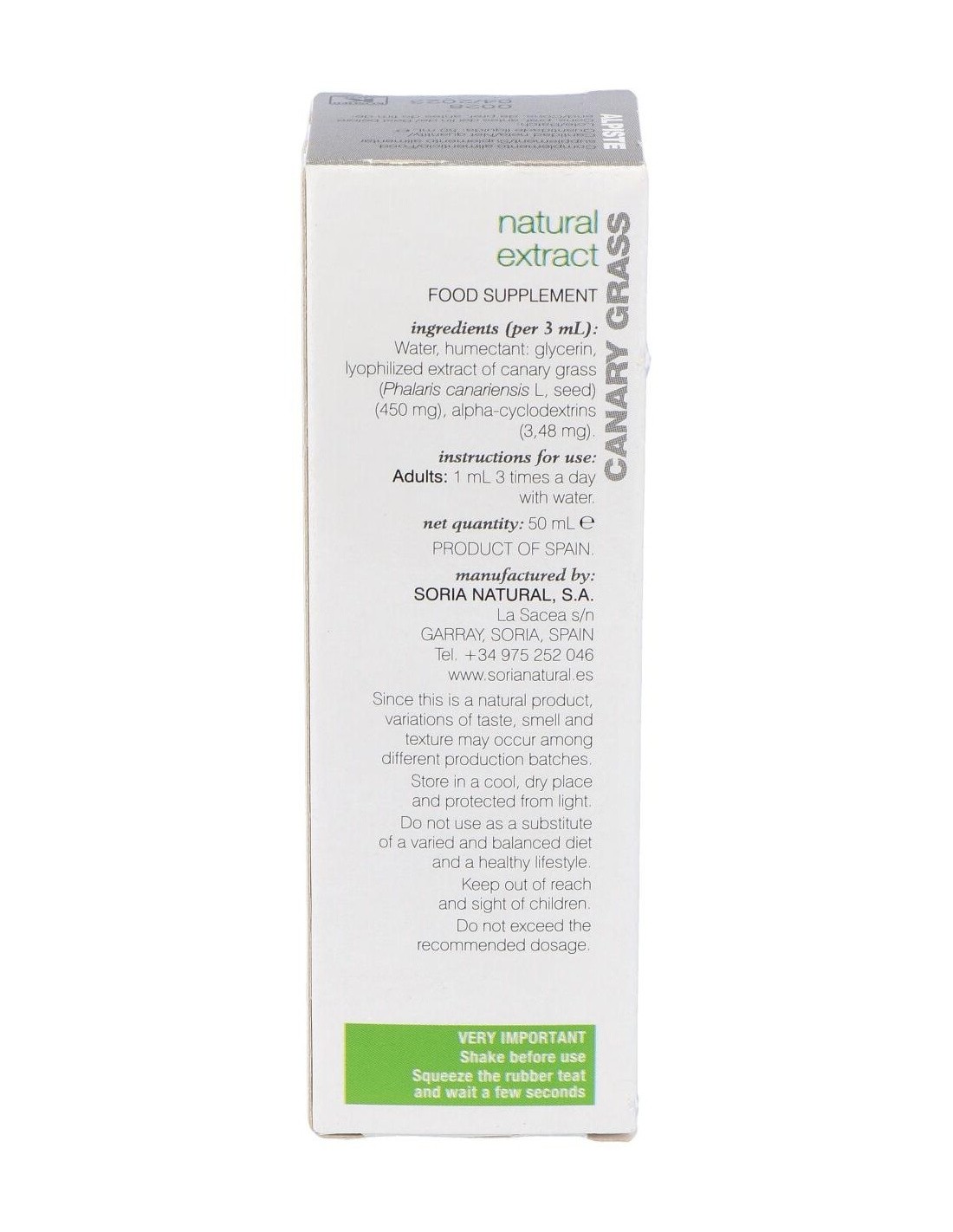 - Extracto concentrado de alpiste que permite una dosificación práctica y cómoda.