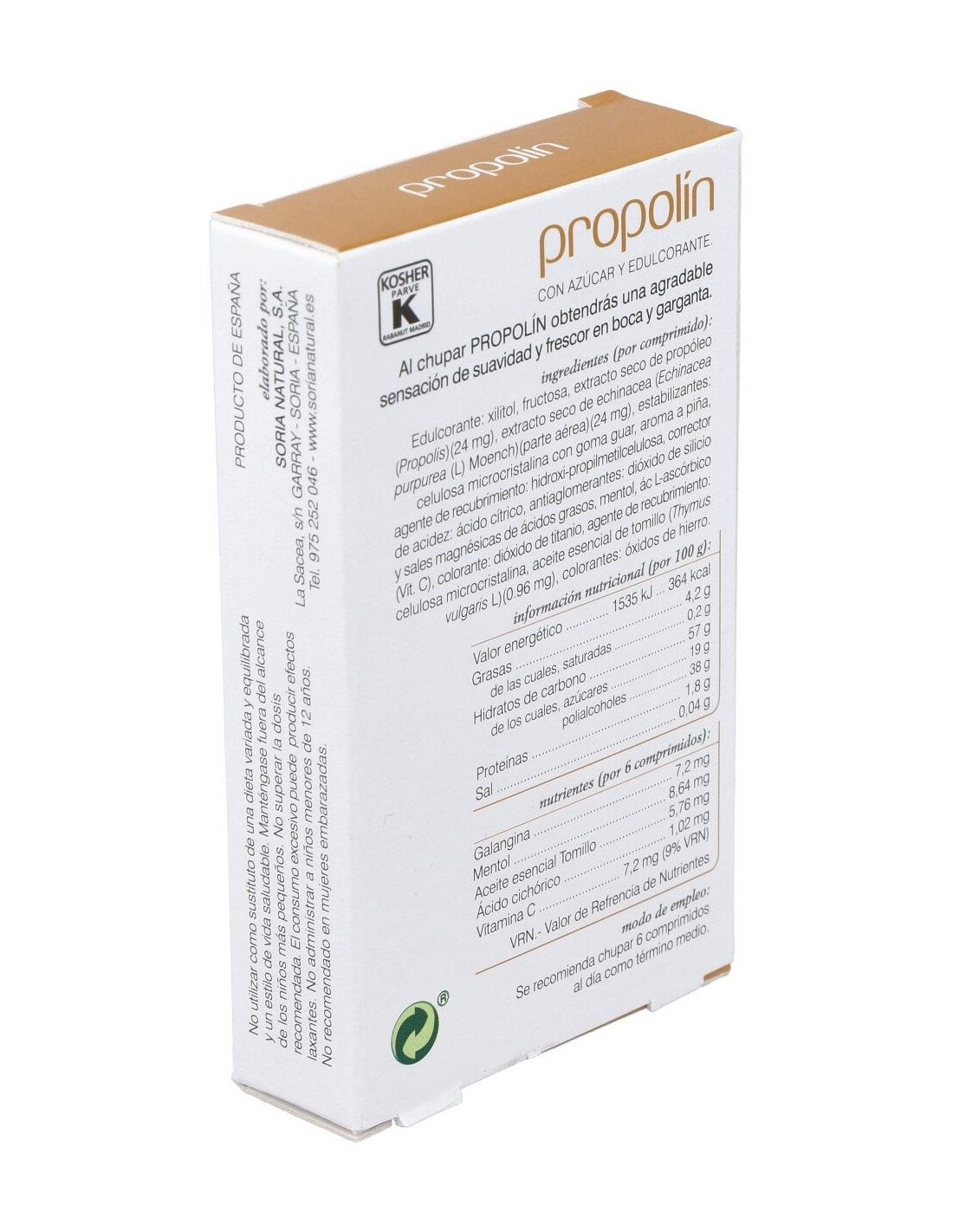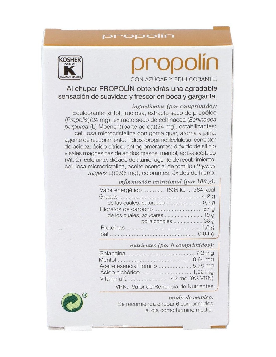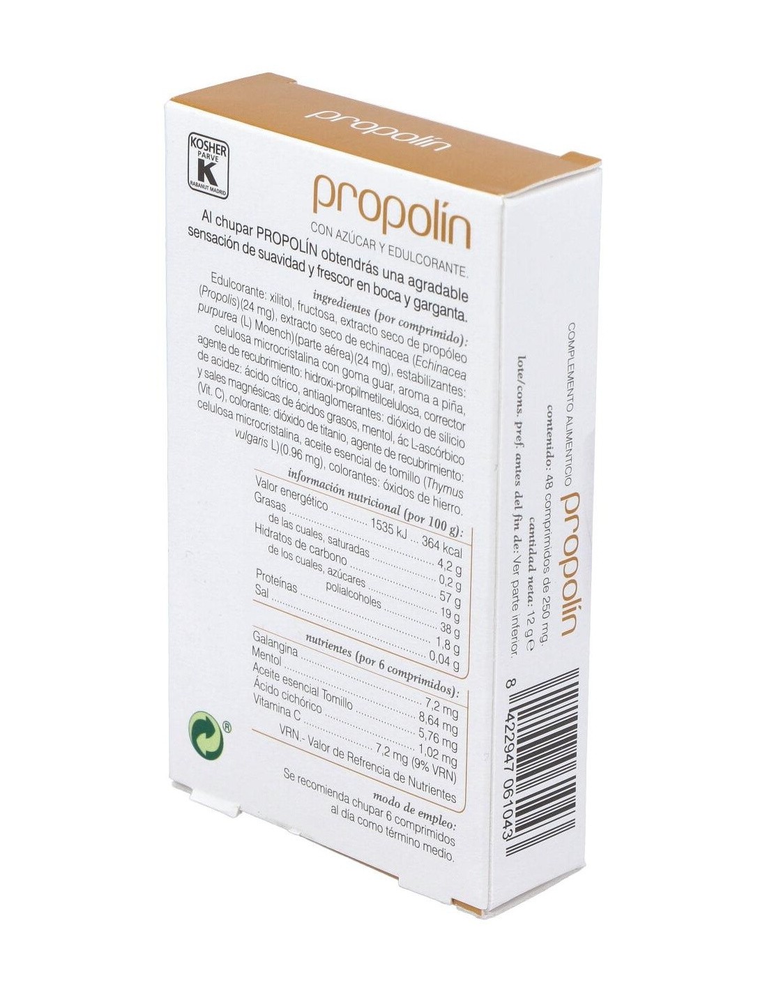 - Cada comprimido contiene 250 mg de propóleo, reconocido por su composición natural.