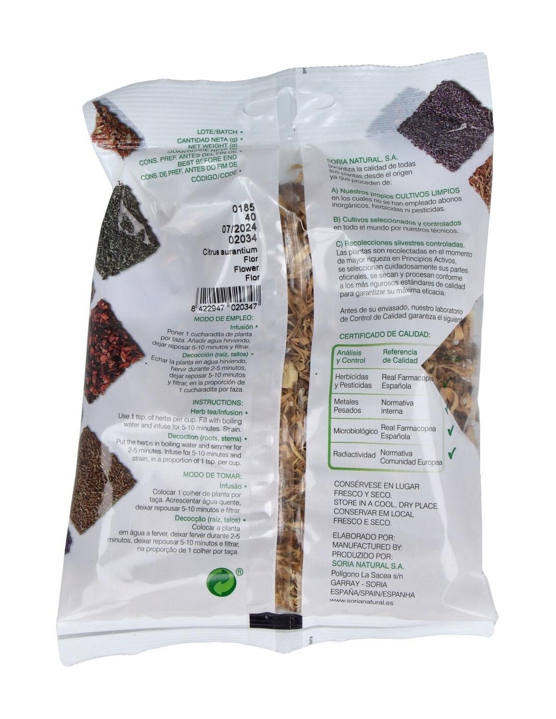 El Azahar Bolsa 40Gr. de Soria Natural está elaborado con flores cuidadosamente seleccionadas para preservar su esencia y propiedades. Su formato en bolsa permite un almacenamiento cómodo y seguro, manteniendo la integridad del producto para un uso prolongado.