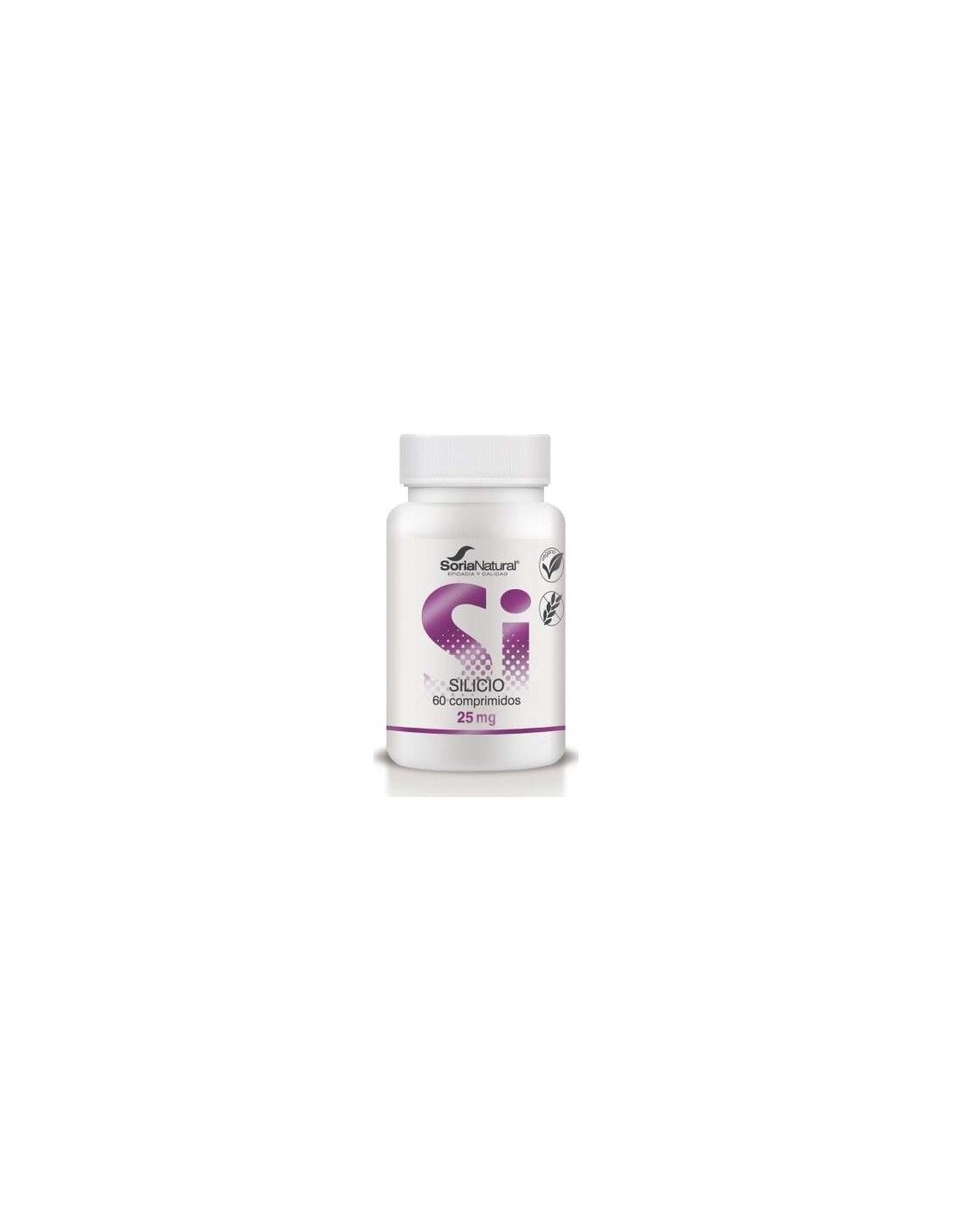 Este producto son comprimidos de silicio de elevada absorción, estos aportan el 100% de la cantidad diaria recomendada de este mineral. El Silicio es un mineral presente en casi todos los tejidos, interviene en la formación de cartílago articular, huesos, dientes y piel. Es fundamental para los períodos de crecimiento, en caso de desmineralización de huesos o retardo de crecimiento. También favorece el fortalecimiento de los dientes, pelo, uñas y a la elasticidad de la piel. Las vitaminas y minerales son micronutrientes indispensables para el buen funcionamiento de nuestro organismo. La línea de Vitaminas y Minerales de Soria Natural ha sido concebida en forma de comprimidos de liberación sostenida, favoreciendo que los principios activos se liberen en nuestro cuerpo a una velocidad controlada y sostenida, para un mejor aprovechamiento de los mismos. Composición activa por comprimido:50 mg de silicio. Estabilizador: Celulosa microcristalina e hidroxipropilmetil celulosa, extracto seco de bambú (Bambusa arundinacea (Retz.) Willd., tallo y brote), antiaglomerante: sales magnésicas de ácidos grasos. Modo de empleo:Tomar 1 comprimido al día. Presentación:Envase de 60 comprimidos.Recomendaciones y advertencias:Producto vegano, sin gluten.
