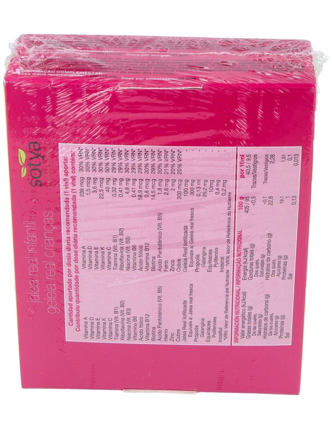 Nuestra jalea real, una sustancia altamente nutritiva producida por las abejas, está especialmente formulada para fortalecer el sistema inmunológico infantil. Enriquecida con vitaminas, minerales, própolis y echinácea, esta potente combinación mejora la resistencia frente a infecciones, aporta antioxidantes, y mejora el apetito y la circulación sanguínea.