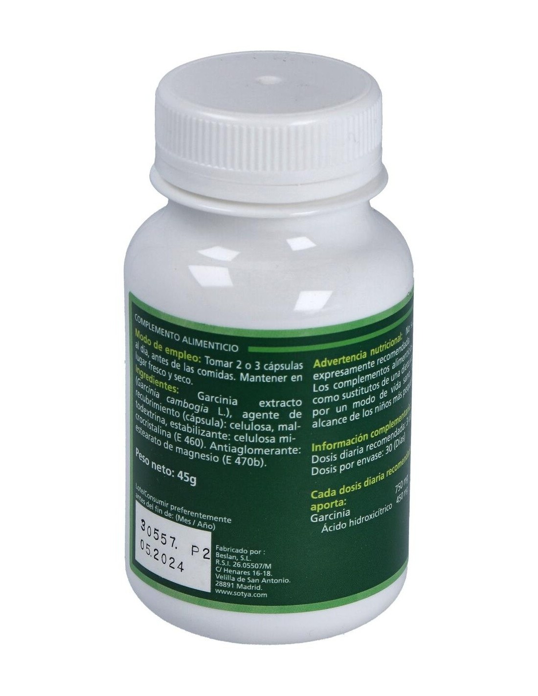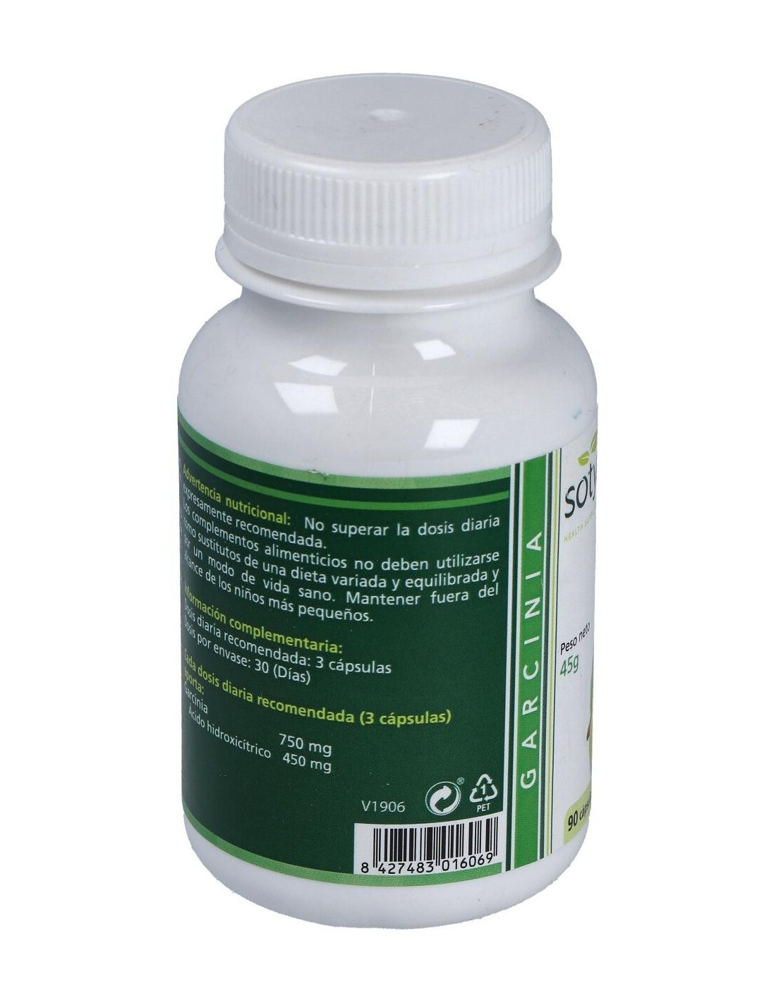 La garcinia se emplea en dietas de control de peso. Sus principios activos, lo ácidos hidroxicítricos (A.H.C.), presentes en la piel, actúan inhibiendo la enzima responsable de la conversión de los azúcares en grasas, principalmente triglicéridos y lipoproteínas malas o de baja densidad (LDL). De este modo, la garcinia ralentiza la producción de grasa, con lo que se controlan los depósitos de grasa y, manteniendo un nivel constante de azúcar en sangre, se controla también el apetito. Los A.H.C. producen sensación de saciedad y ayudan a nuestro metabolismo a quemar mejor las grasas.Para los deportistas se trata de un complemento alimenticio ideal porque ayuda a no almacenar grasas y favorece la producción de glucógeno.Ingredientes activos por cápsula:250 mg de extracto de garcinia cambogia.Modo de empleo:Tomar de 2 a 3 cápsulas al día antes de las comidas.Presentación:Bote de 90 cápsulas.