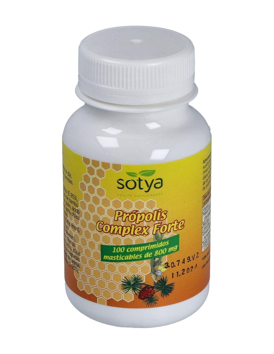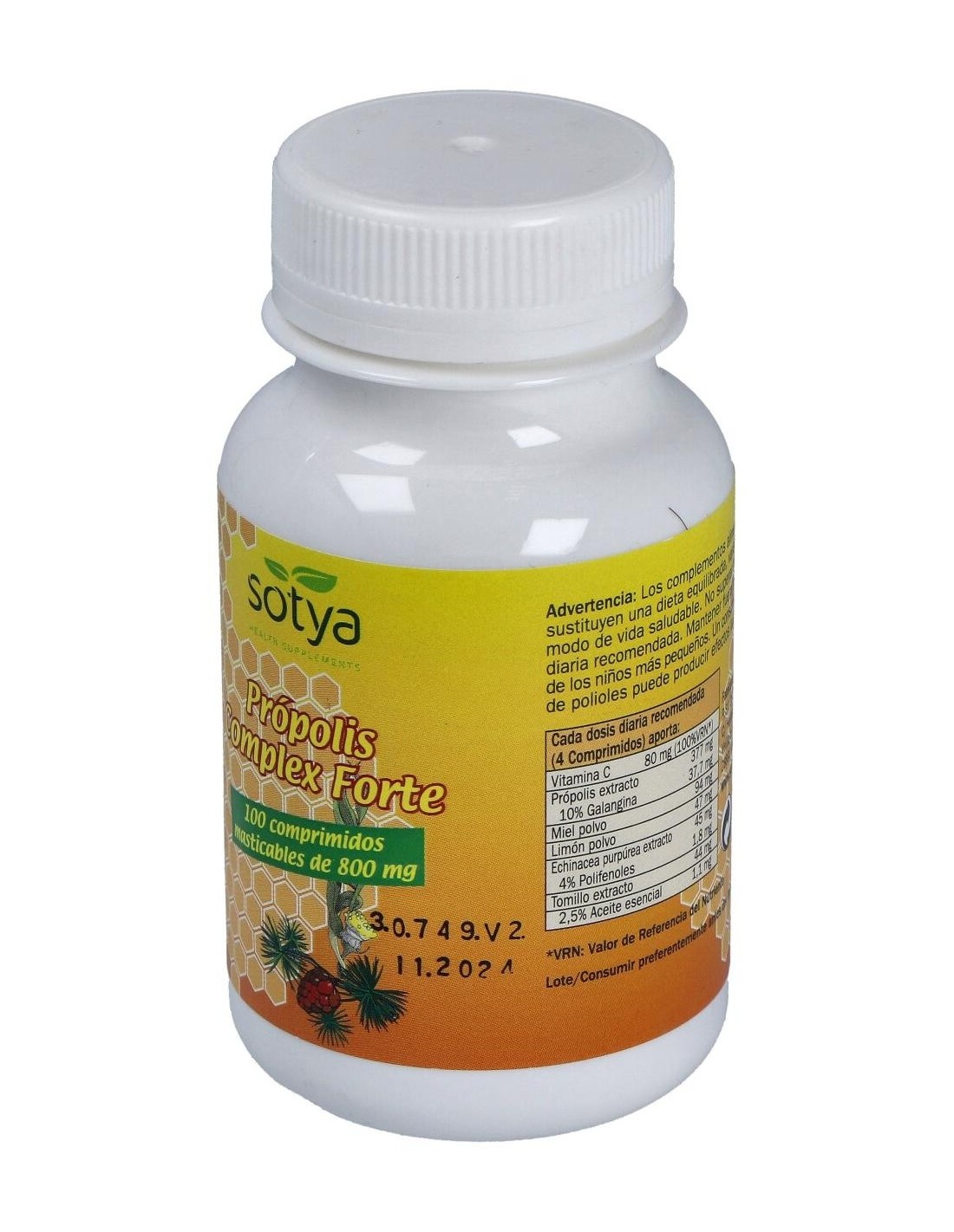 Própolis Complex Forte 800Mg Comp. Mast. 100U de Sotya aporta una opción conveniente para quienes buscan complementar su alimentación con propóleo en una forma fácil de consumir.