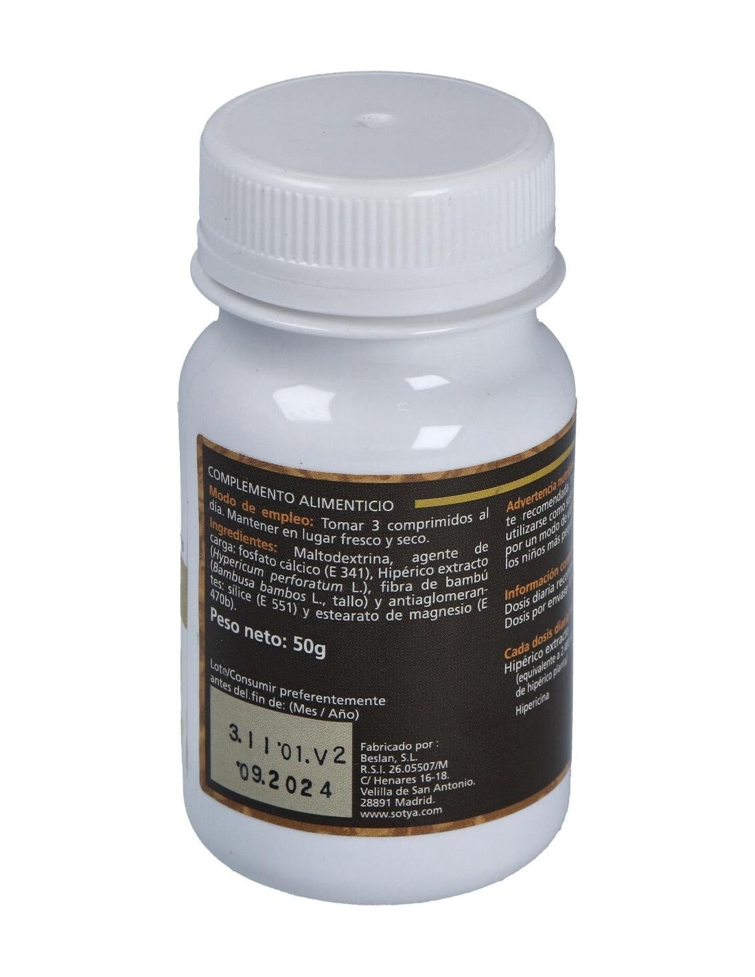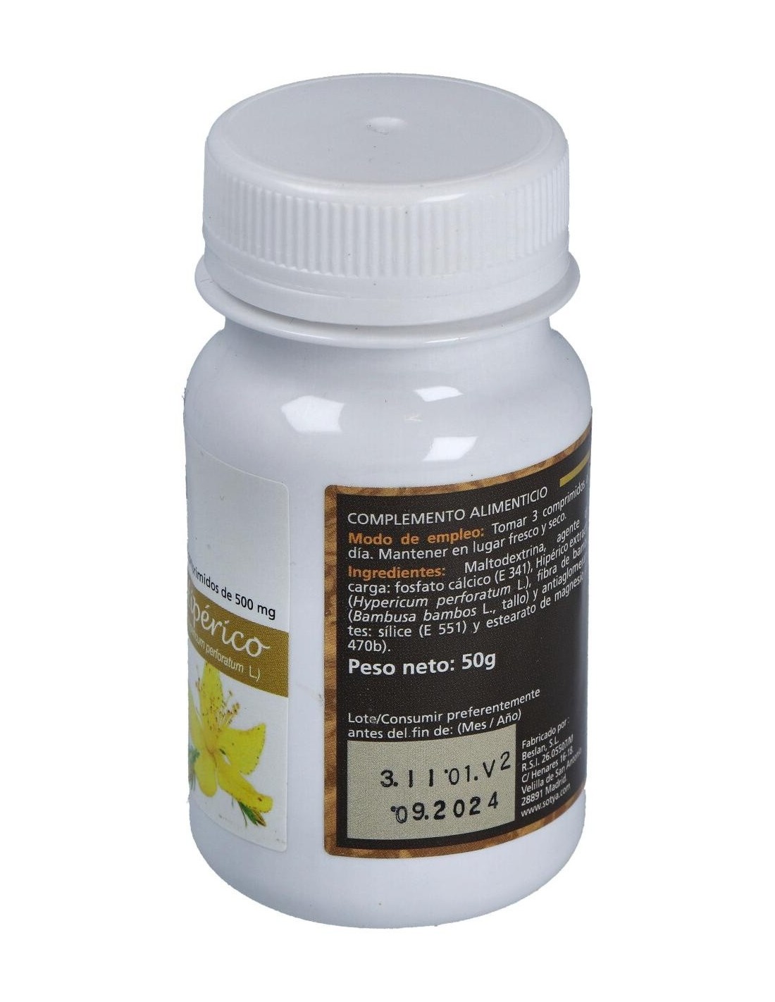- Cada comprimido contiene 500 mg de extracto de hipérico, contribuyendo a una ingesta controlada y constante.