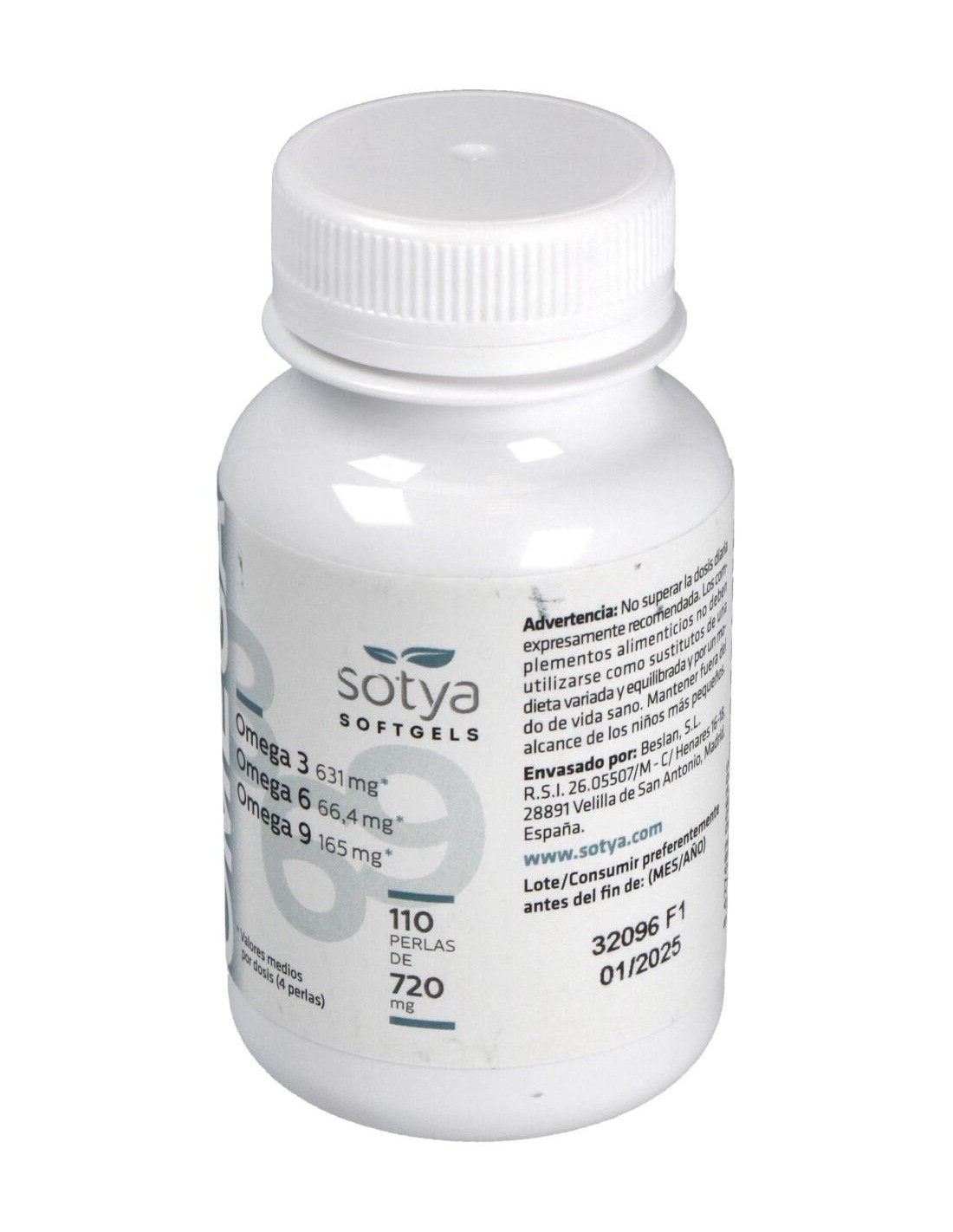 Omega 3,6,9 720Mg Perlas 110U de Sotya es un suplemento diseñado para personas que buscan complementar su dieta con ácidos grasos esenciales. Este producto es adecuado para quienes desean apoyar su bienestar general mediante una fórmula equilibrada que combina diferentes tipos de omega.