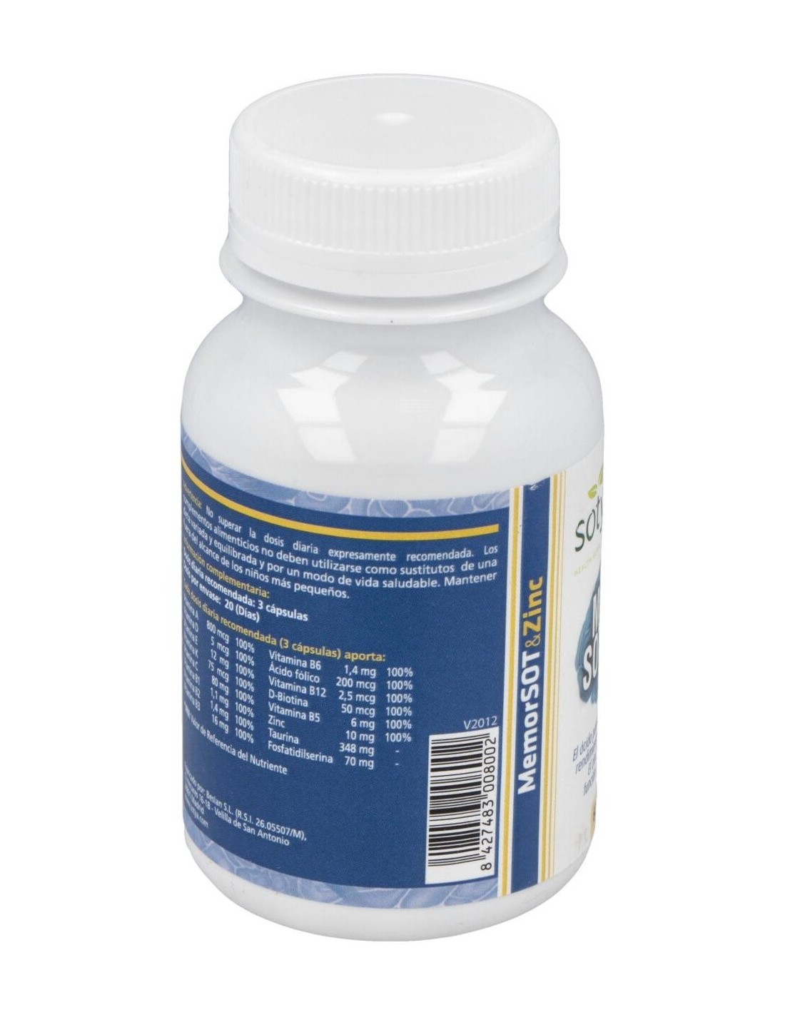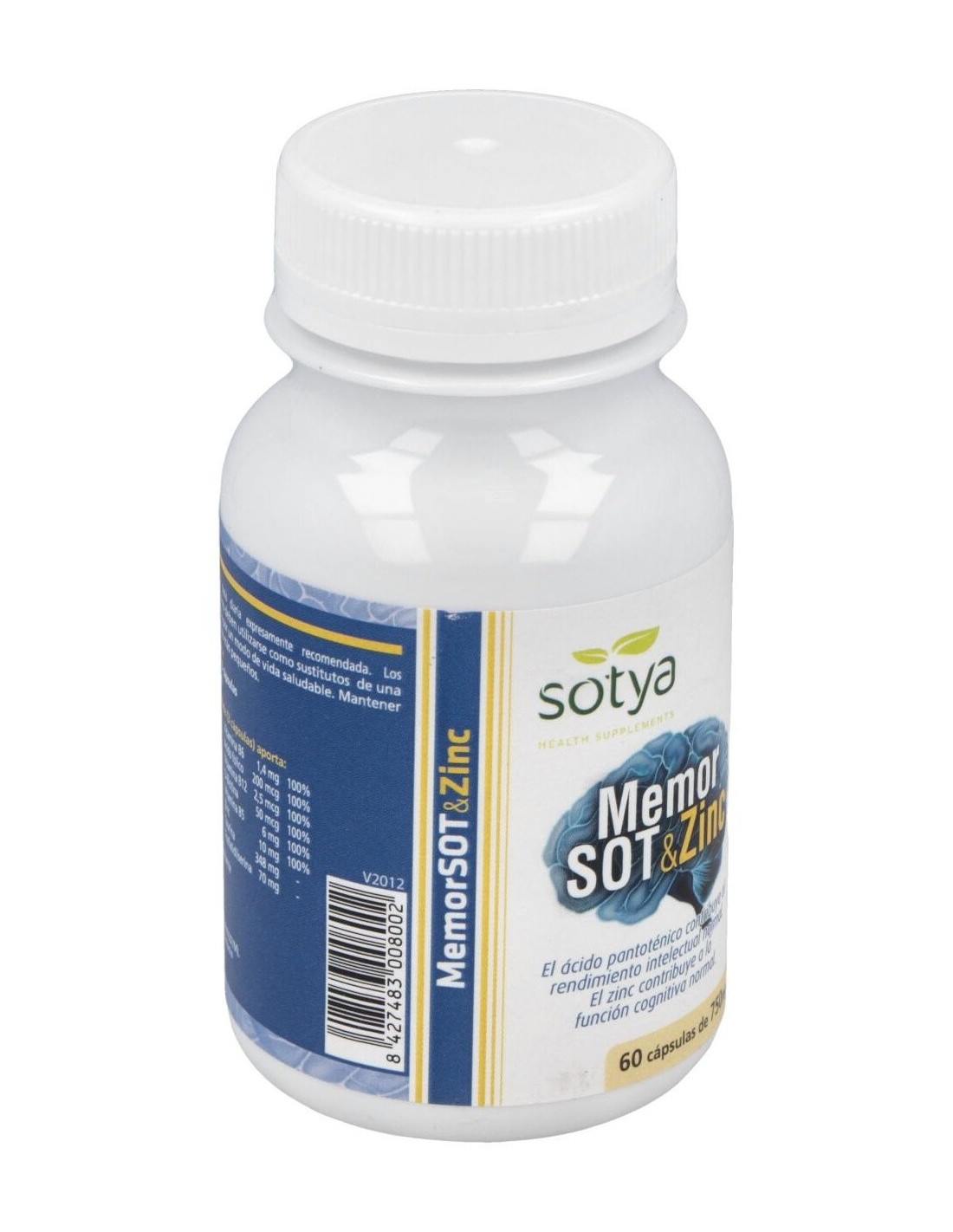 Memor Sot + Zinc 750Mg Caps 60U de Sotya es un suplemento nutricional para adultos que contribuye al mantenimiento de la función cognitiva y el bienestar cerebral, gracias a su combinación de ingredientes clave como zinc y otros nutrientes esenciales.
