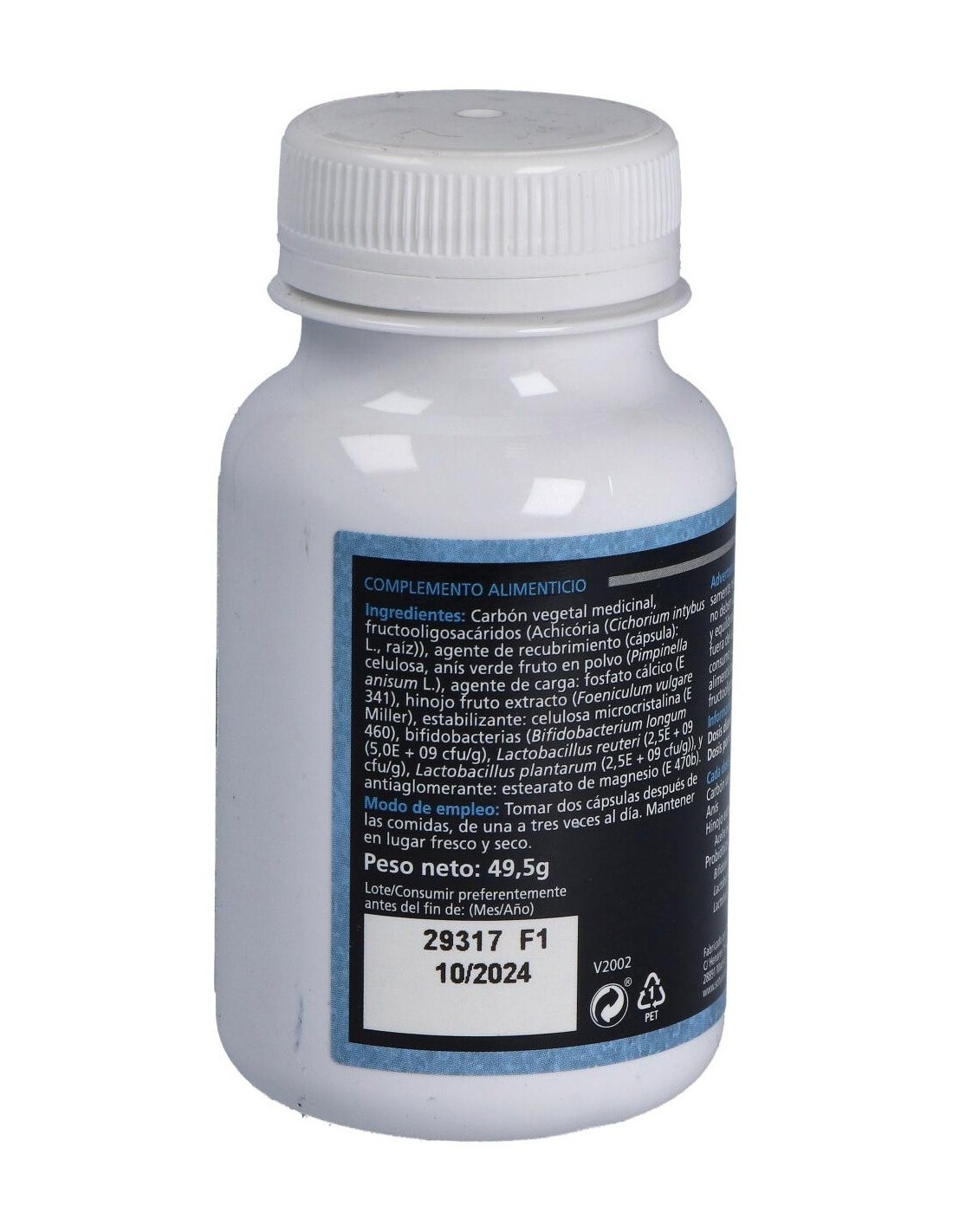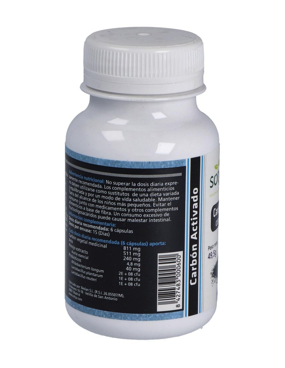 - Cada cápsula contiene 550 mg de carbón activado, reconocido por su capacidad para adsorber sustancias en el organismo.