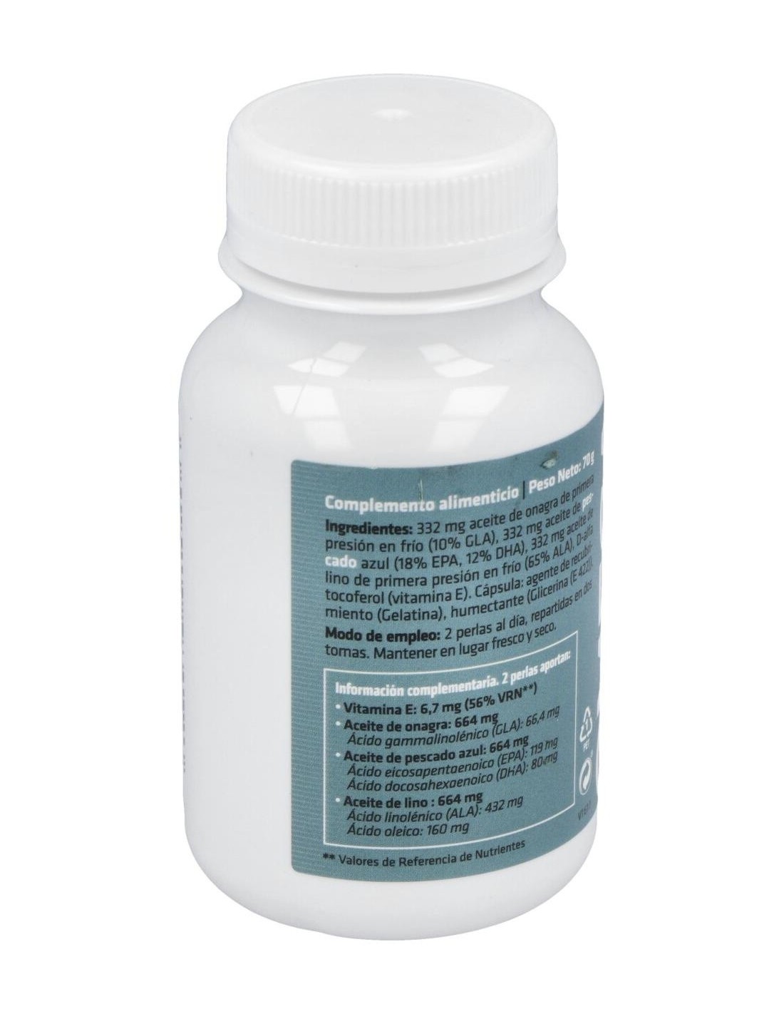 - Cada perla contiene 1400 mg de una combinación de ácidos grasos omega 3, 6 y 9, contribuyendo a una ingesta balanceada.