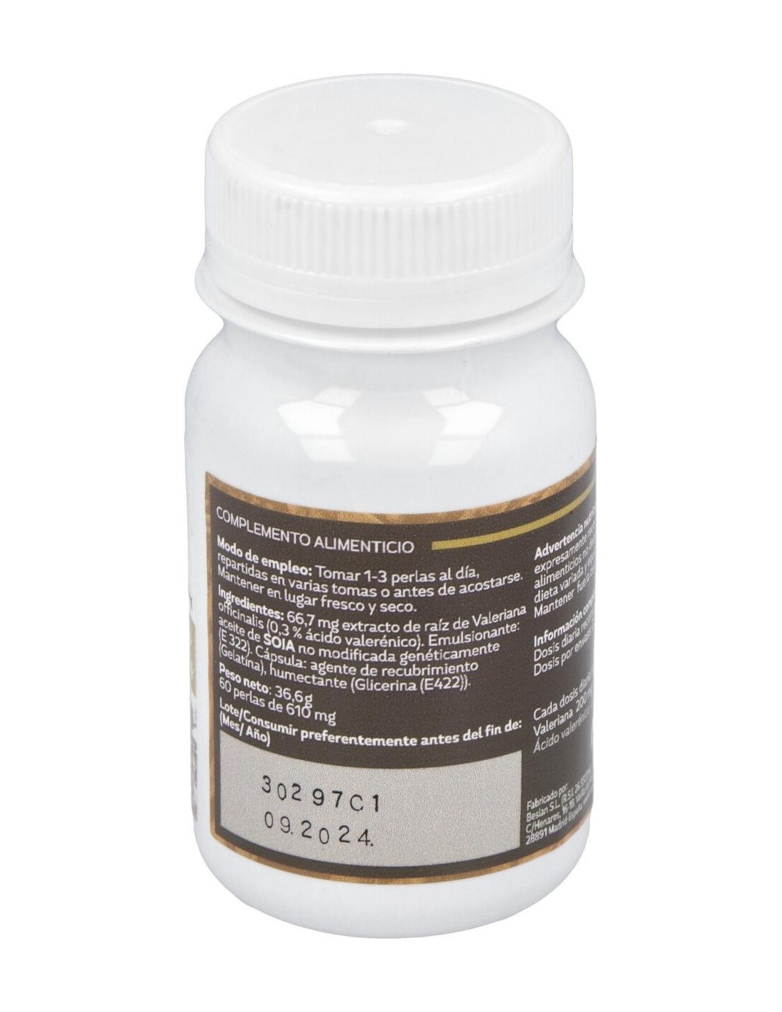 - Cada perla contiene 610 mg de extracto de valeriana, proporcionando una forma práctica y dosificada del ingrediente.