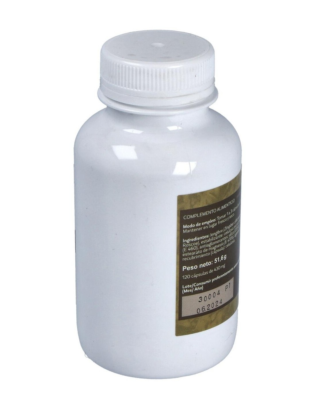 - Cada cápsula contiene 430 mg de jengibre, proporcionando una dosis constante y controlada en cada toma.