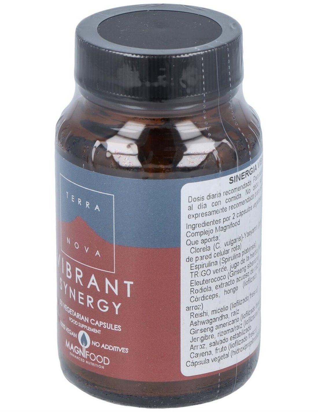 Composición por dosis diaria recomendada (2 cápsulas):1.005 mg de complejo magnifood (250 mg de polvo de chlorella de pared celular rota, 200 mg de espirulina, 100 mg de hierba de cebada verde, 100 mg de raíz de eleuterococo, 100 mg de raíz de rodiola, 50 mg de cordiceps, 50 mg de micelio de reishi, 50 mg de raíz de ashwagandha, 50 mg de raíz de ginseng americano, 25 mg de rizoma/raíz de jengibre, 20 mg de salvado de arroz y 10 mg de cayena). Modo de empleo:Tomar de 1 a 2 cápsulas al día con comida. Presentación:Bote de 50 cápsulas.