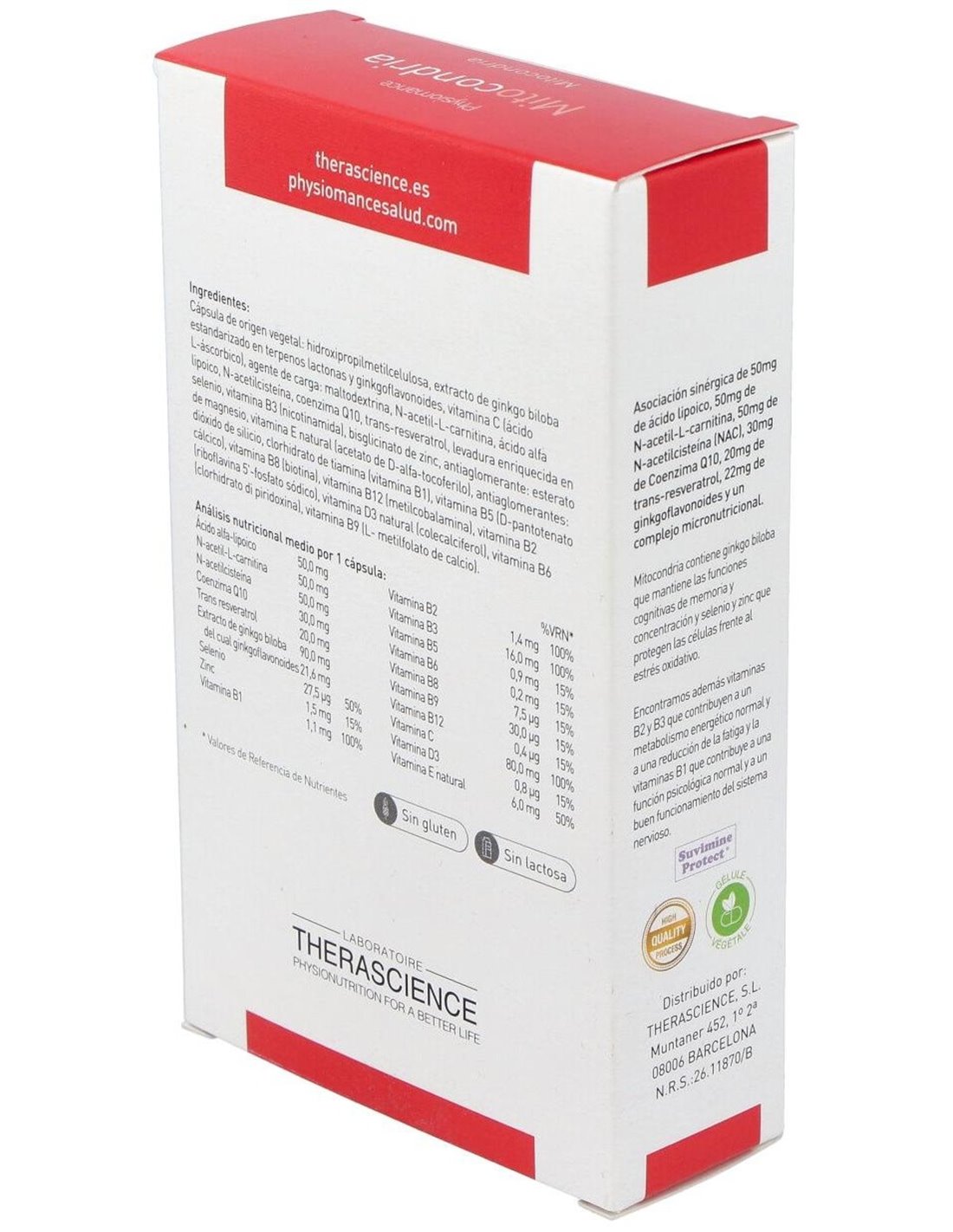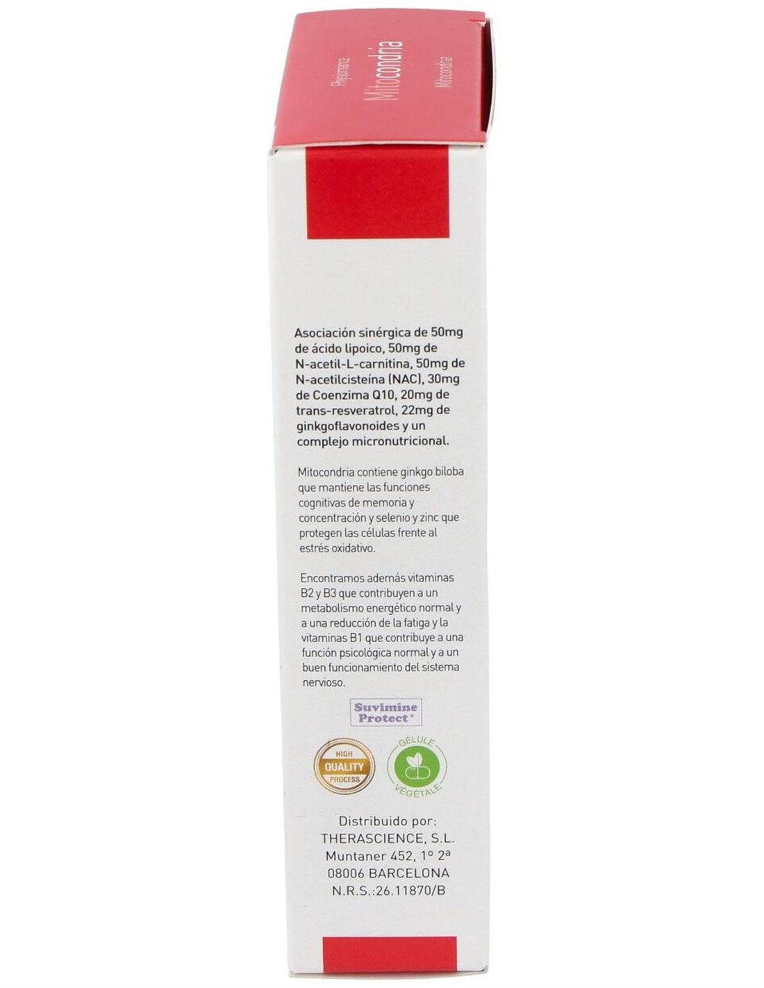 Cápsula de origen vegetal: hidroxipropilmetilcelulosa, extracto de ginkgo biloba estandarizado en terpenos lactonas y ginkgoflavonoides, vitamina C (ácido L áscorbico), agente de carga: maltodextrina, N-acetil-L-carnitina, ácido alfa lipoico, N-acetilcisteína, coenzima Q10, trans-resveratrol, levadura enriquecida en selenio, vitamina B3 (nicotinamida), bisglicinato de zinc, antiaglomerante: esterato de magnesio, vitamina E natural (acetato de D-alfa-tocoferilo), antiaglomerantes: dióxido de silicio, clorhidrato de tiamina (vitamina B1), vitamina B5 (D-pantotenato cálcico), vitamina B8 (biotina), vitamina B12 (metilcobalamina), vitamina B2 (riboflavina 5´-fosfato sódico), vitamina D3 natural (colecalciferol), vitamina B6 (clorhidrato di piridoxina), vitamina B9 (L- metilfolato de calcio).