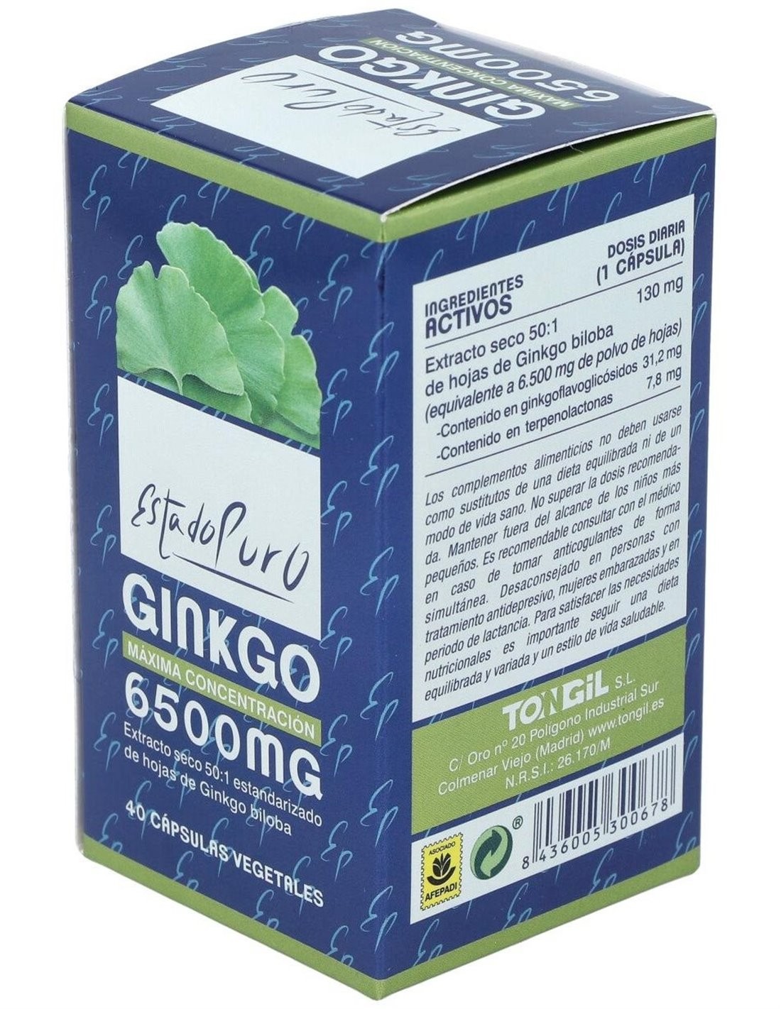 Ginkgo 6500Mg. 40Cap. Estado Puro de Tongil es un suplemento diseñado para personas que buscan apoyar su bienestar diario mediante ingredientes naturales. Su formulación está pensada para quienes desean incorporar un extracto de ginkgo biloba en su rutina de manera práctica y dosificada.