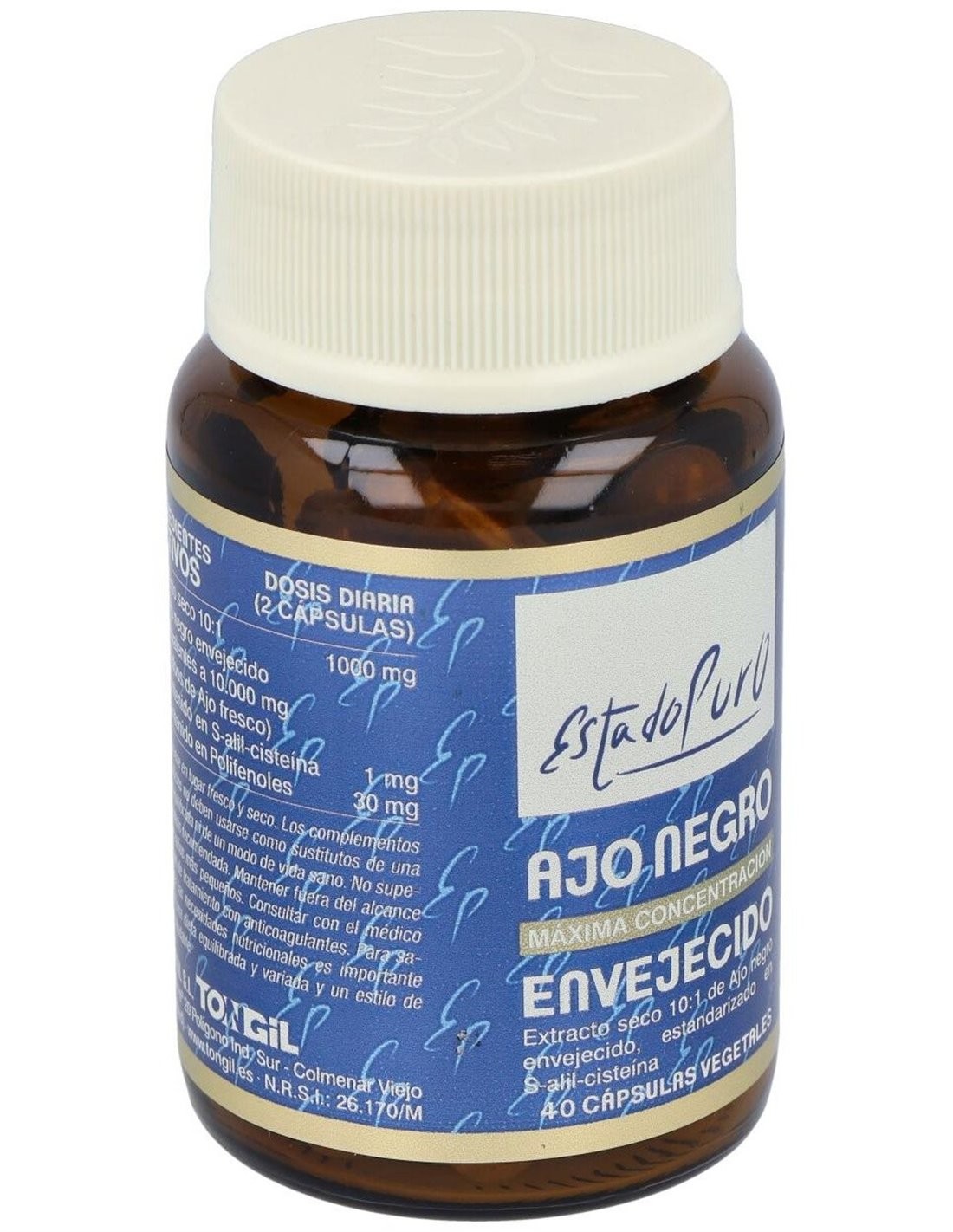 El Ajo Negro Envejecido 40Cap. Estado Puro de Tongil es un suplemento natural diseñado para quienes buscan incorporar ingredientes derivados del ajo negro en su rutina diaria. Este producto está pensado para personas interesadas en opciones alimenticias que aporten compuestos derivados del proceso de envejecimiento del ajo.
