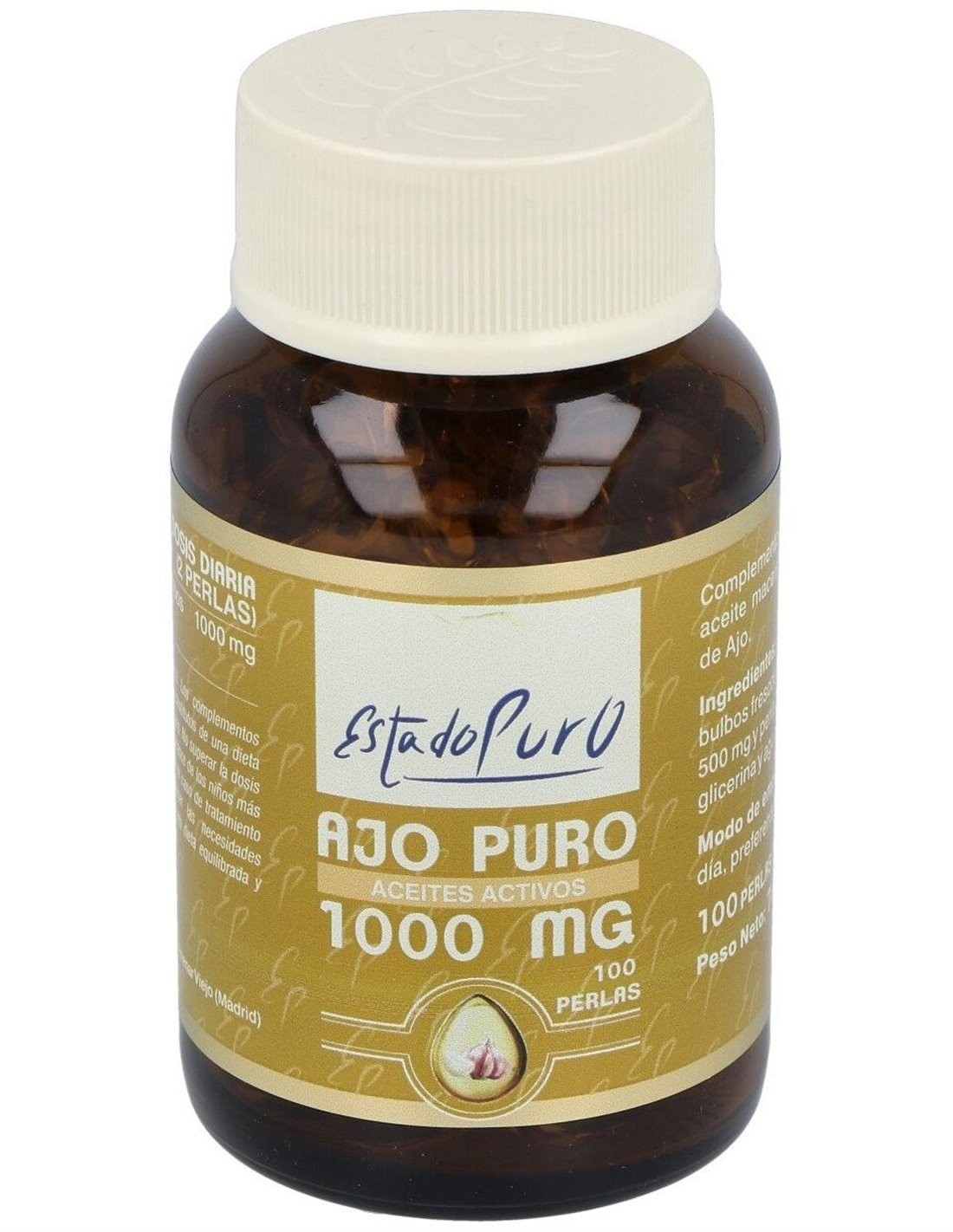 Composición activa por 2 perlas:1.000 mg de aceite macerado de bulbos frescos de Ajo.Otros ingredientes:Perla envolvente de gelatina, glicerina y agua.Modo de empleo:Tomar 2 perlas al día con las comidas.Presentación:Bote de 100 perlas.