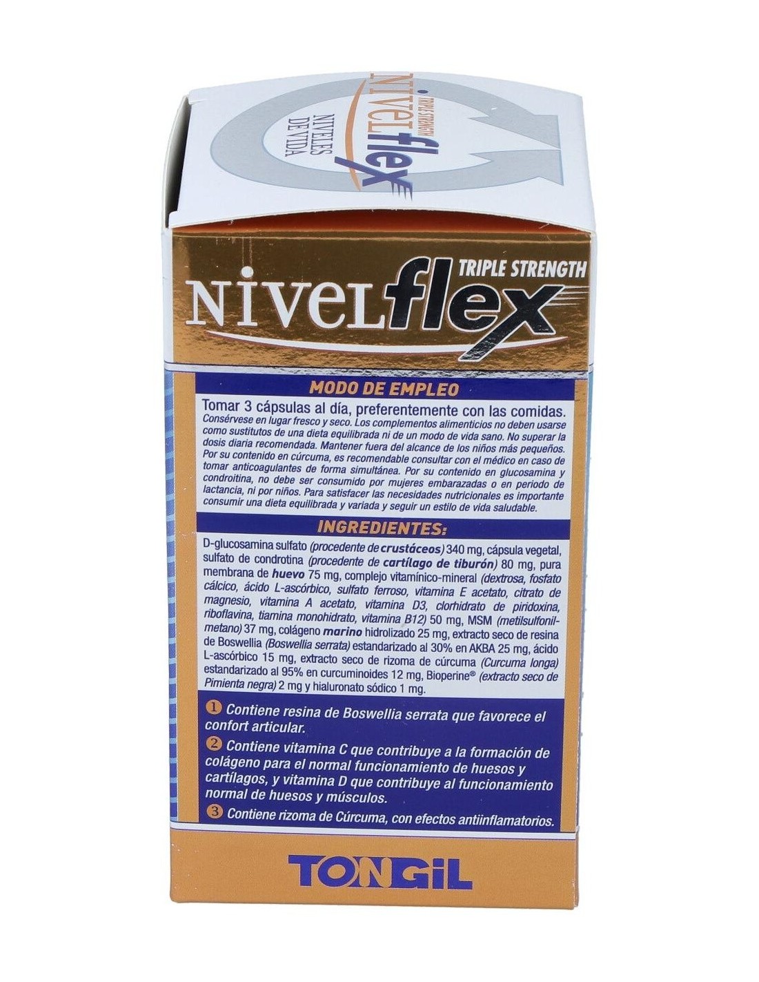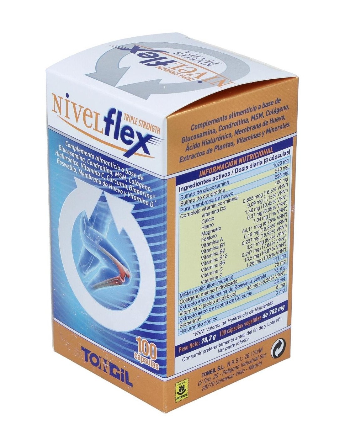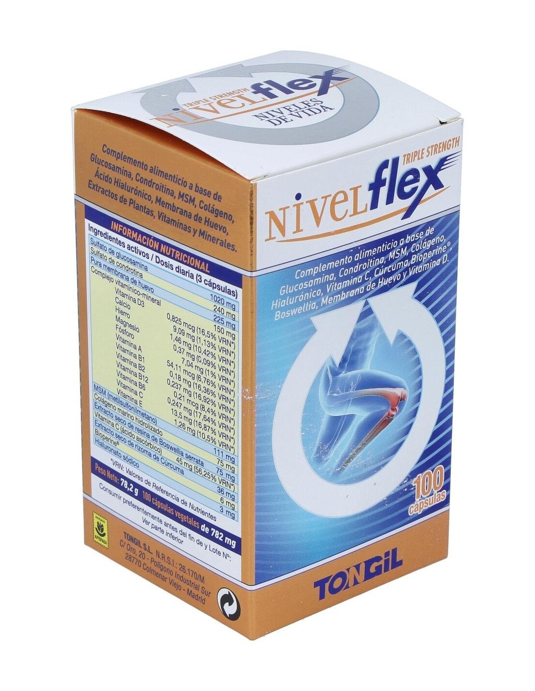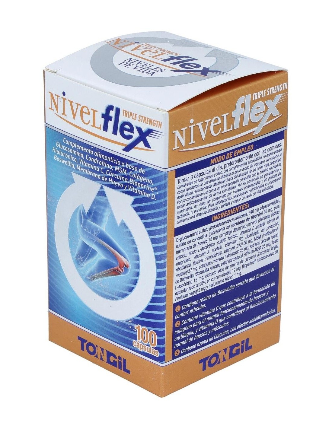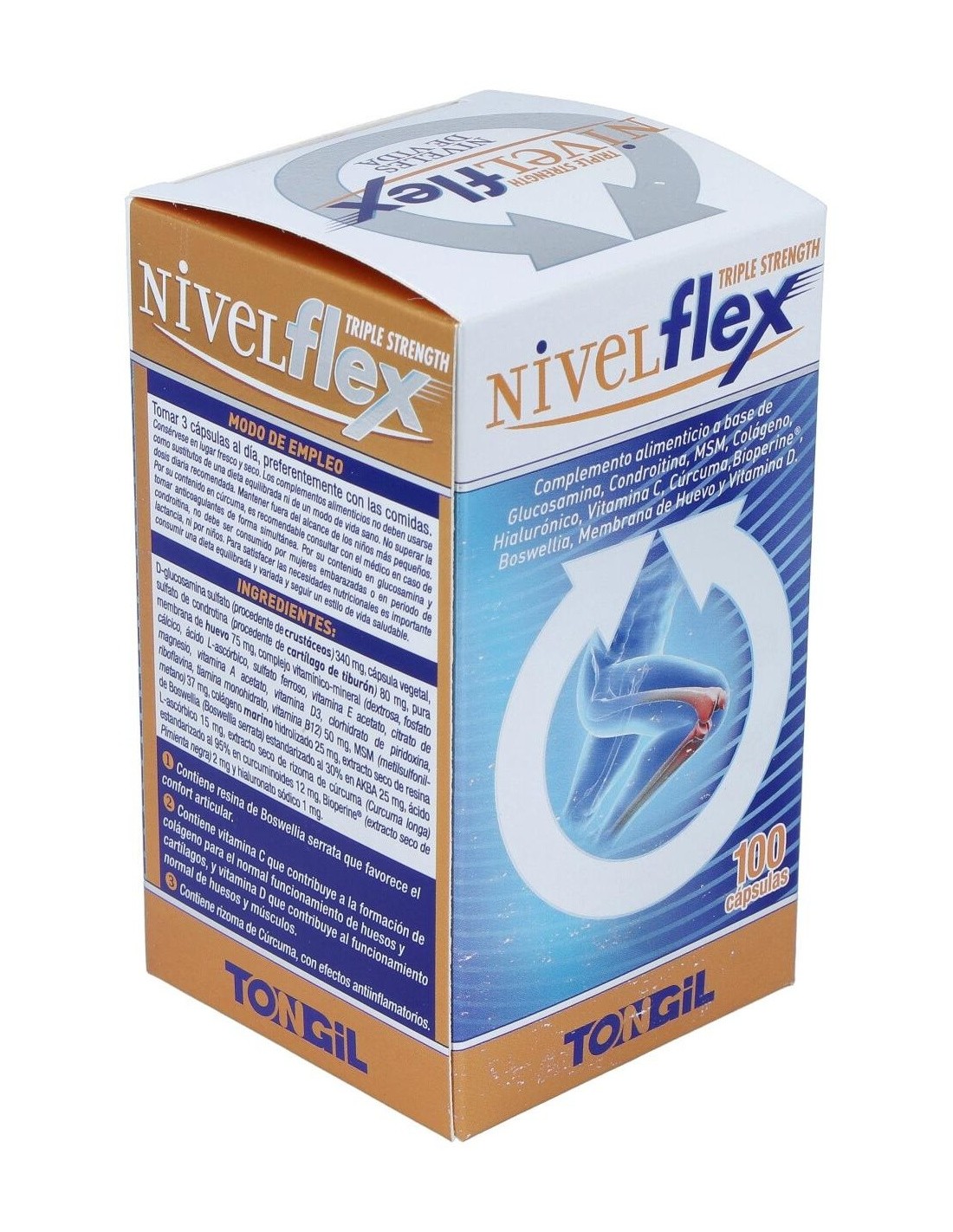 El Nivelflex 100Cap. de Tongil es un suplemento dirigido a personas que buscan apoyar el bienestar articular. Con su fórmula específica, contribuye a mantener la movilidad y flexibilidad de las articulaciones.