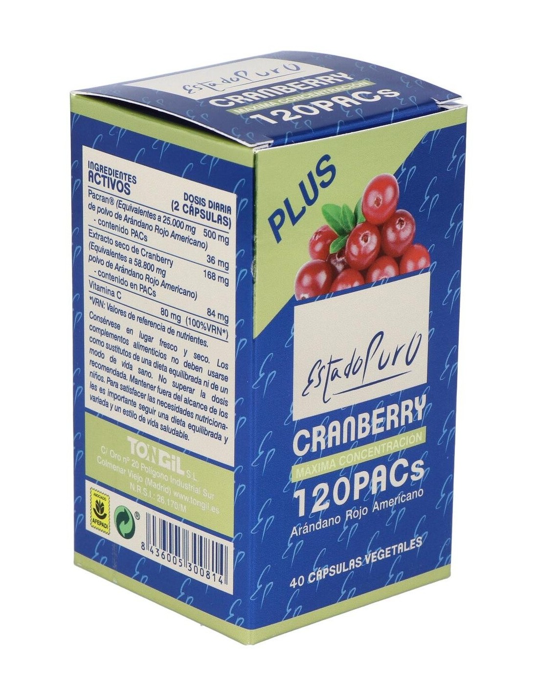 Cranberry 120 Pacs 40Cap. Estado Puro de Tongil