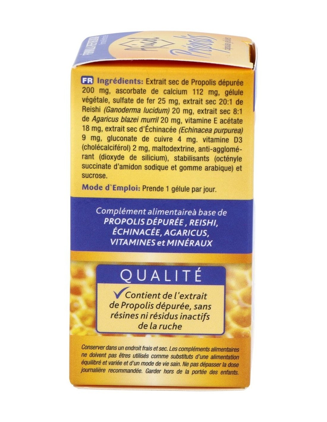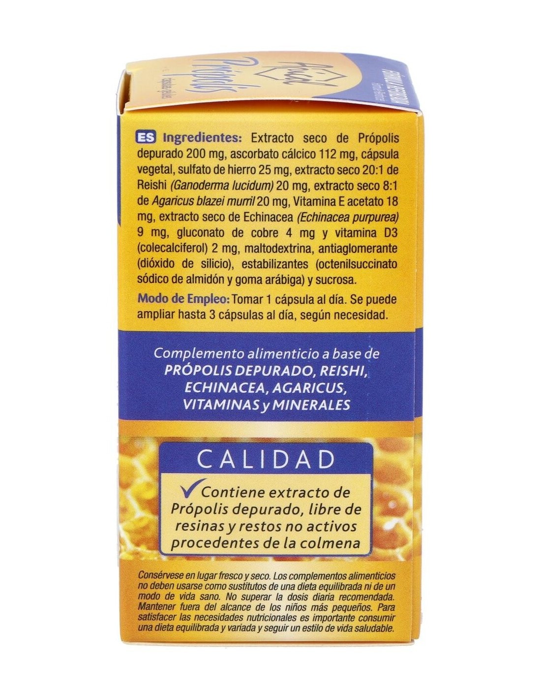 - Contiene extracto de propóleos en cápsulas, facilitando su consumo y dosificación precisa.