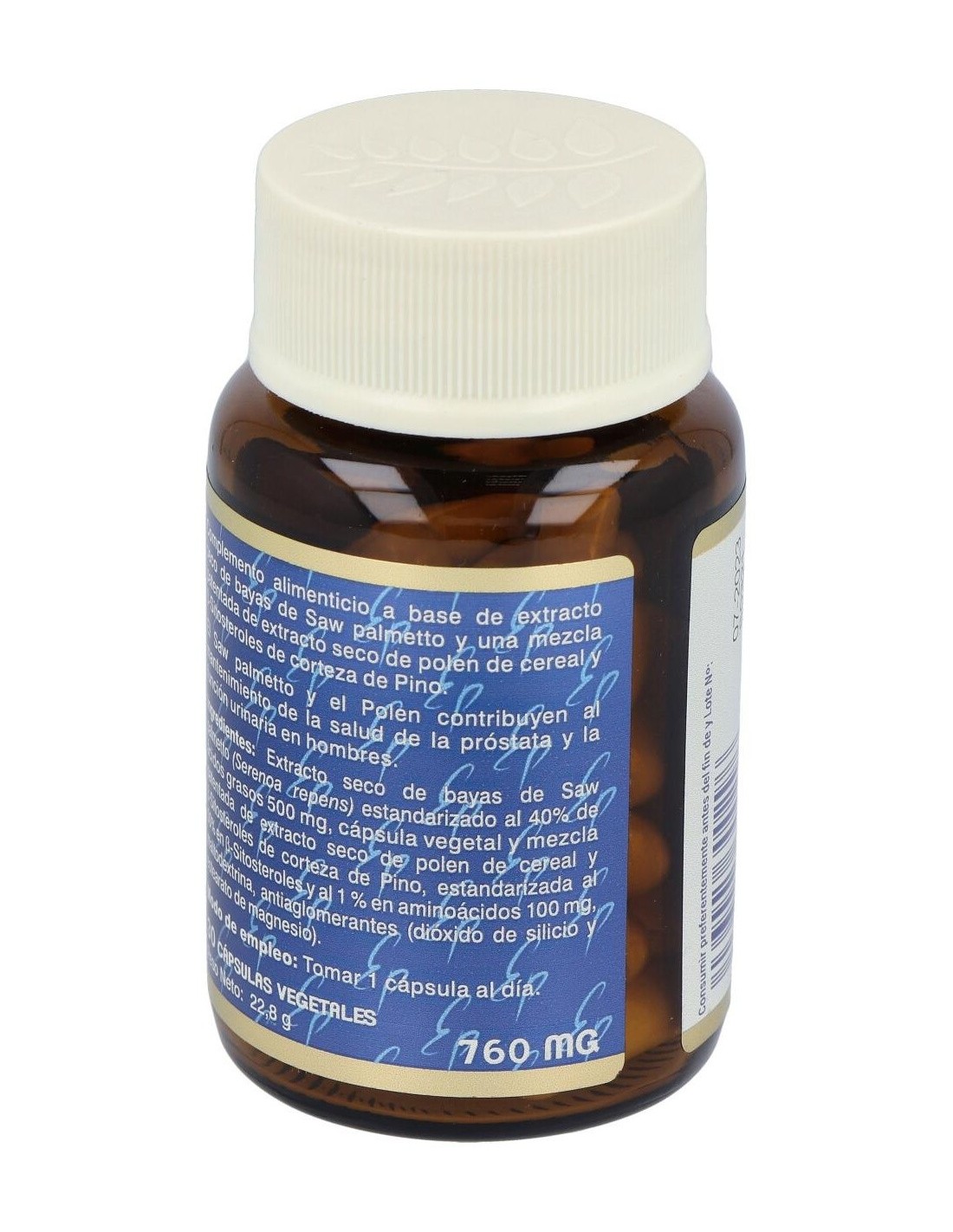 - Contiene polen de cereal en estado puro, aportando una fuente natural de nutrientes derivados del Saw Palmeto.