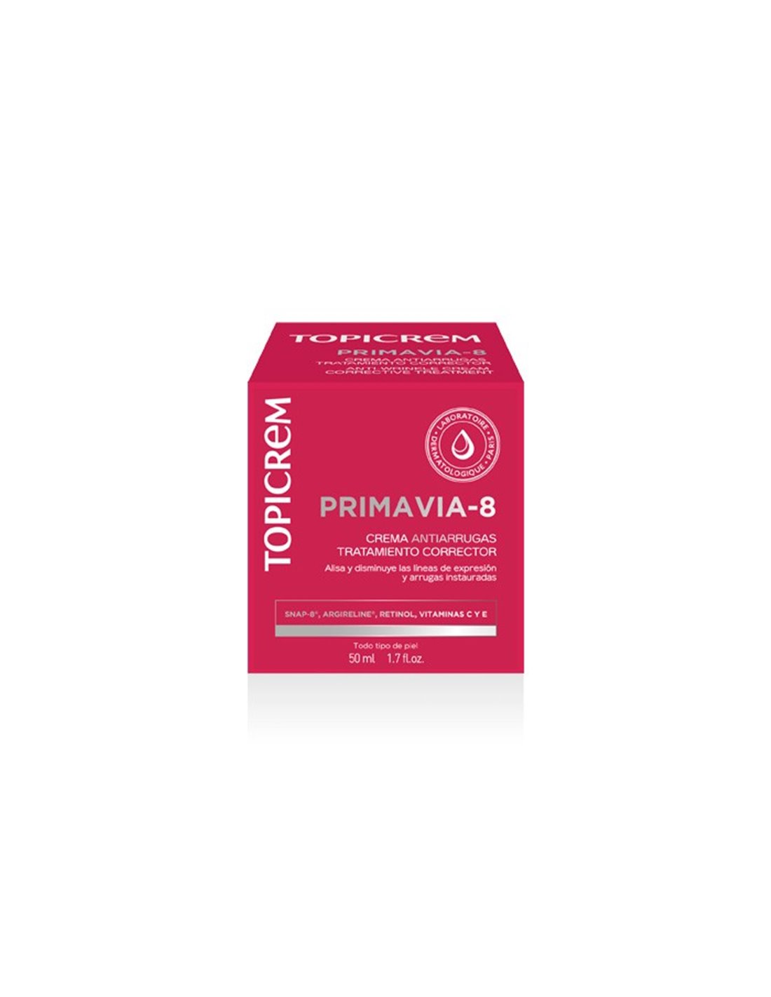 Crema anti-arrugas de expresión. Crema intensiva para la prevención y tratamiento de la formación de arrugas expresión. Novedosa fórmula que combina tres péptidos que actúan con sinergia decontracturante. Proporciona una altísima eficacia en la prevención y tratamiento de las arrugas de expresión, ya que ayuda a minimizar los efectos de la gesticulación facial suavizando y neutralizando las marcas de expresión. Primavia-8 Crema decontracturante antiarrugas presenta en su conjunto propiedades protectoras del colágeno, decontracturantes y relajantes a nivel cutáneo, hidratantes, antioxidantes y reparadoras. Filtro solar SPF 15.