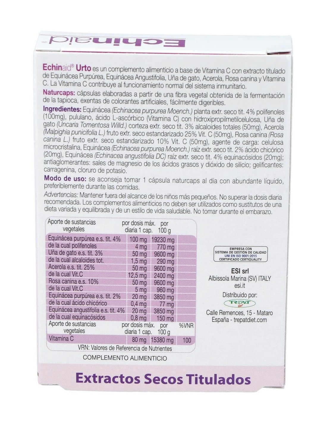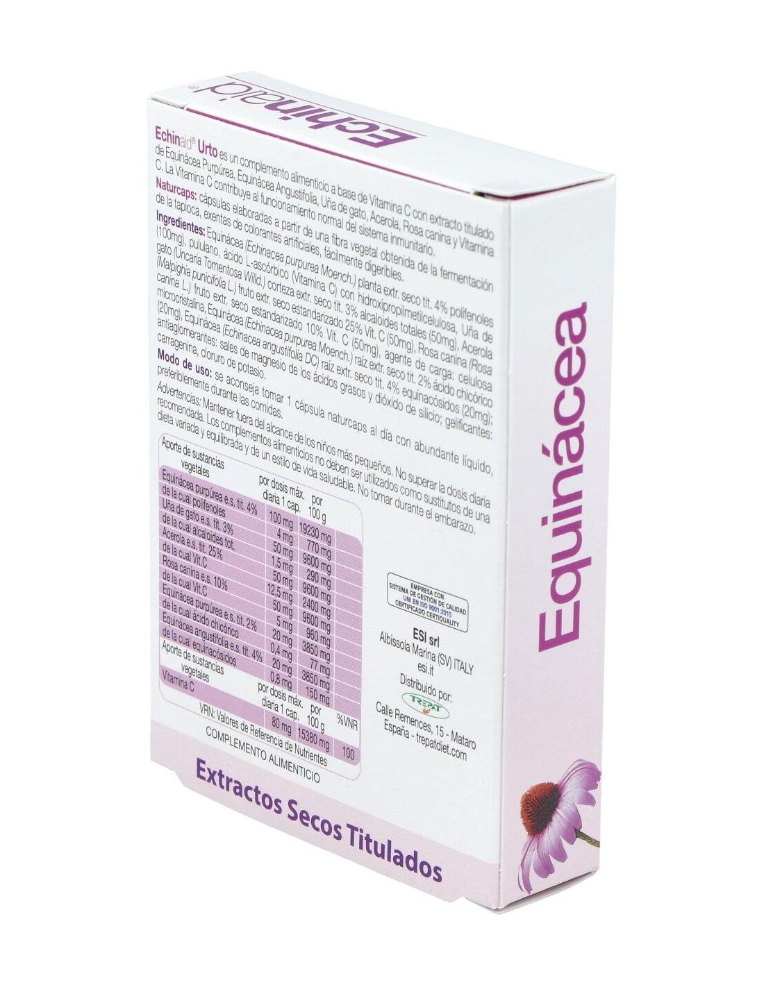 El uso diario de Echinaid Urto es una de las formas más eficaces como preventivo de las enfermedades invernales de origen vírico y bacteriano. Echinaid Urto potencia de forma natural las defensas inmunológicas, gracias a la sinergia de los componentes seleccionados presentes en el producto, que incrementan la actividad de los macrófagos y de las células blancas en la producción de anticuerpos. La Equinácea tambíen es conocida por sus propiedades curativas sobre enfermedades infecciosas como, por ejemplo, infecciones de las vías urinarias. Propiedades de los principios activos: