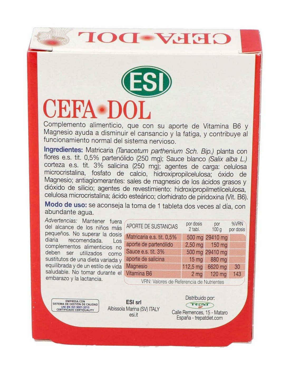 Cefadol de ESI es un complemento alimenticio útil para favorecer la relajación de forma natural y disminuir la tensión muscular. Indicado en aquellas