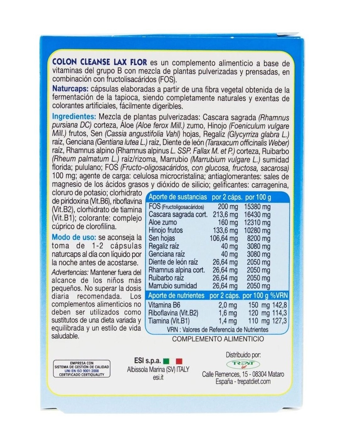Colon Cleanse Lax Flor (Prebioticos) 30Cap de Trepatdiet-Esi